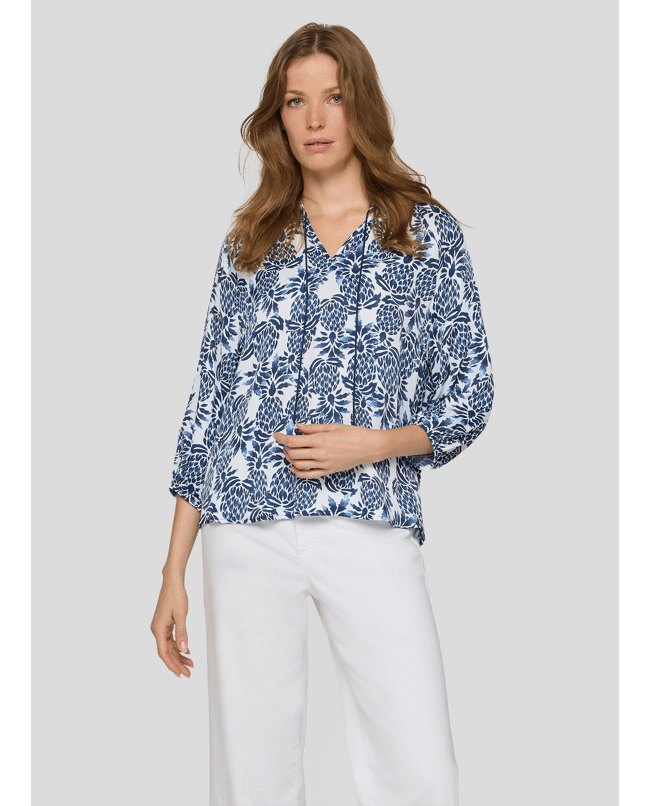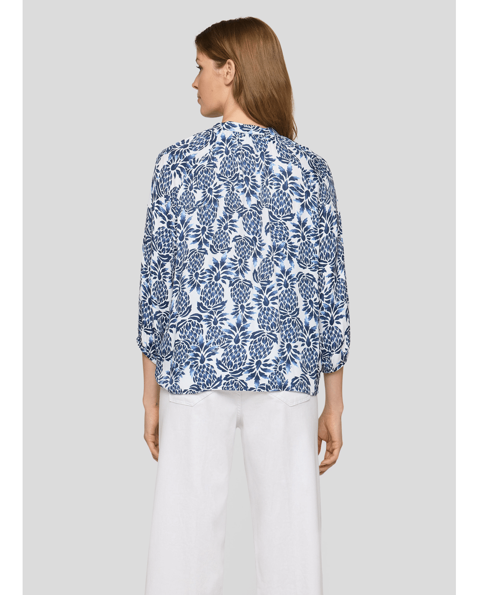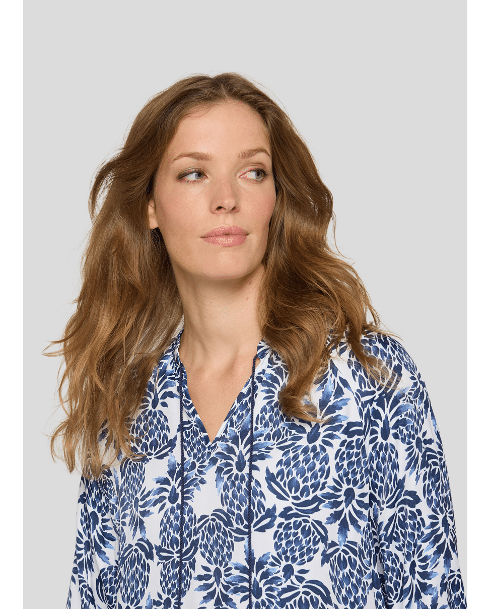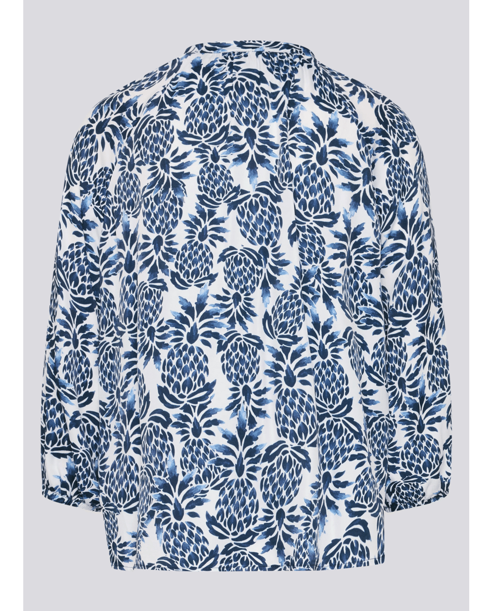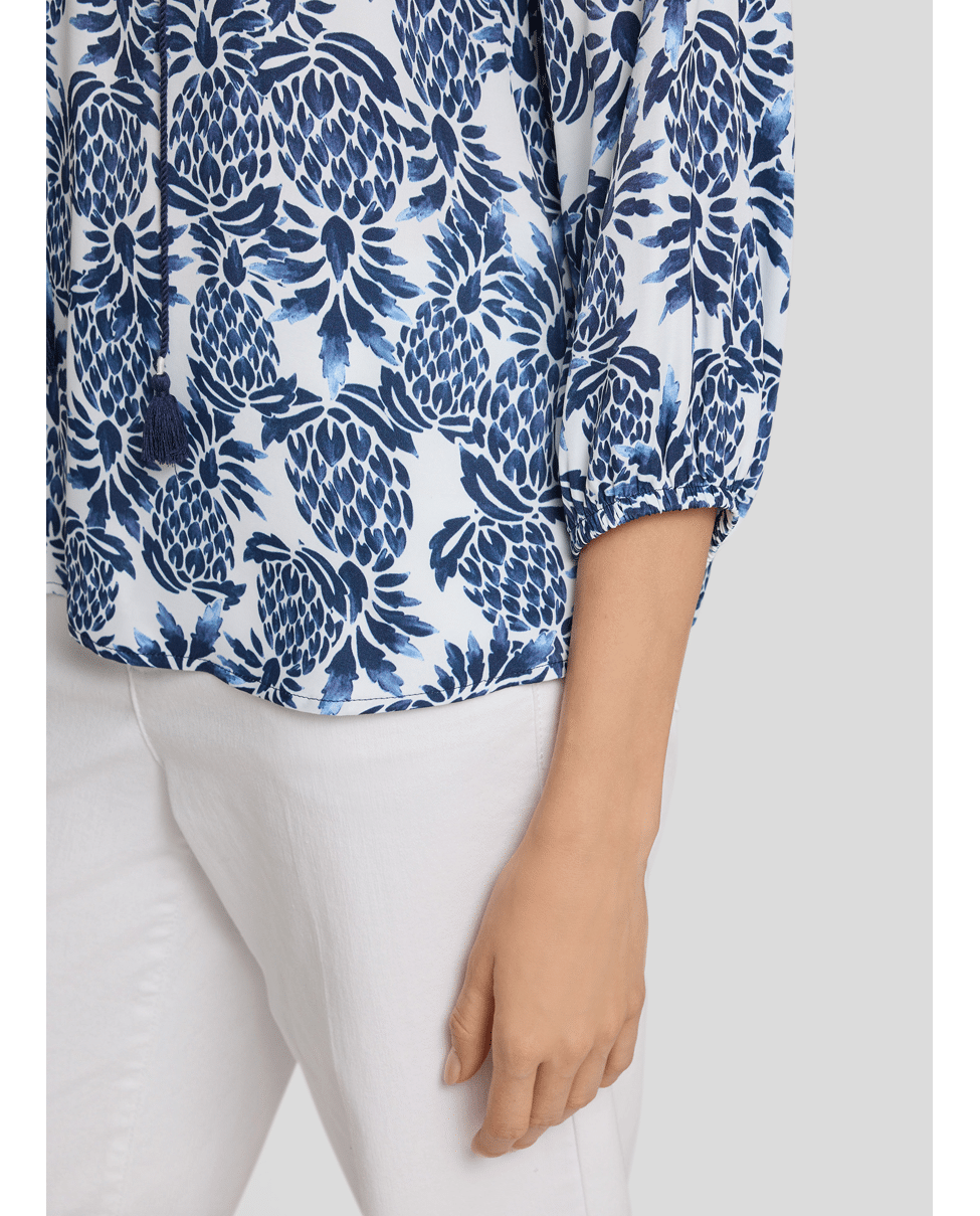 Dames blousetop van Rabe met ananas print, 3/4 mouwen en ronde hals met V-inkeping en trekkoord