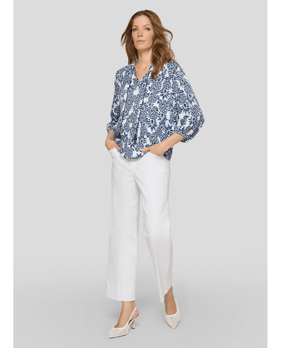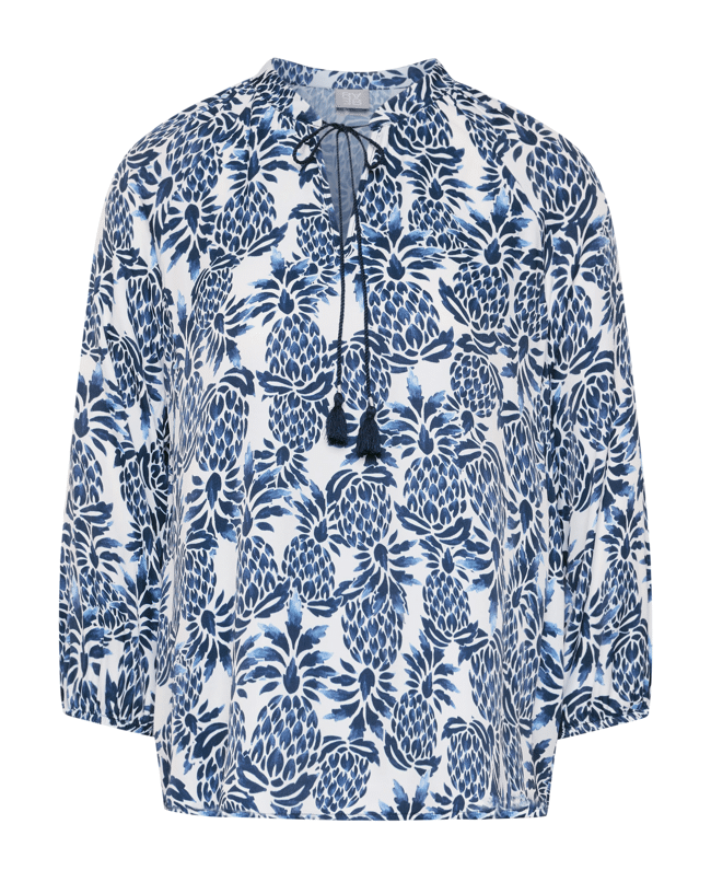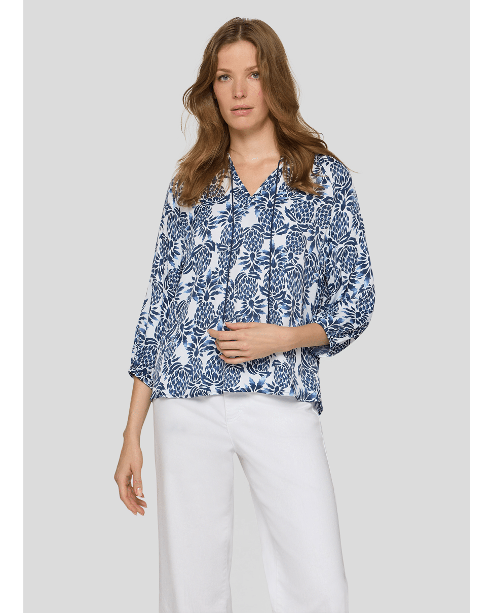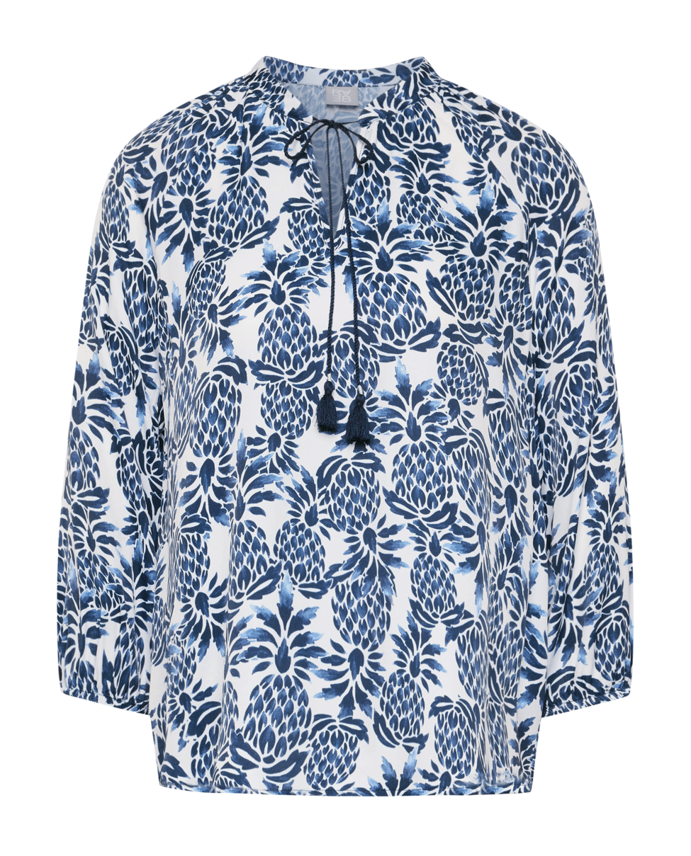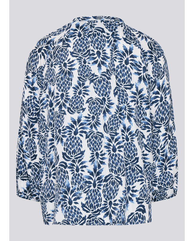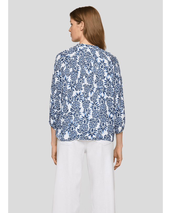 Dames blousetop van Rabe met ananas print, 3/4 mouwen en ronde hals met V-inkeping en trekkoord