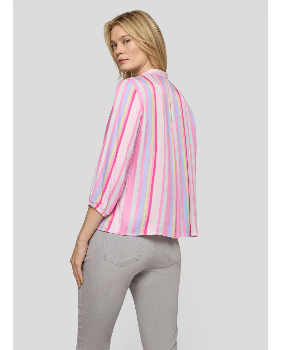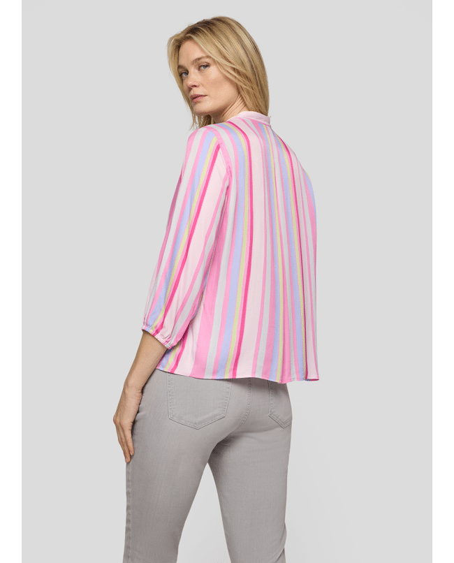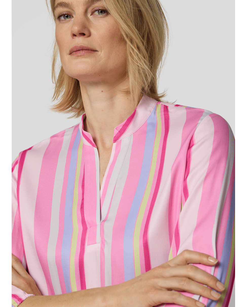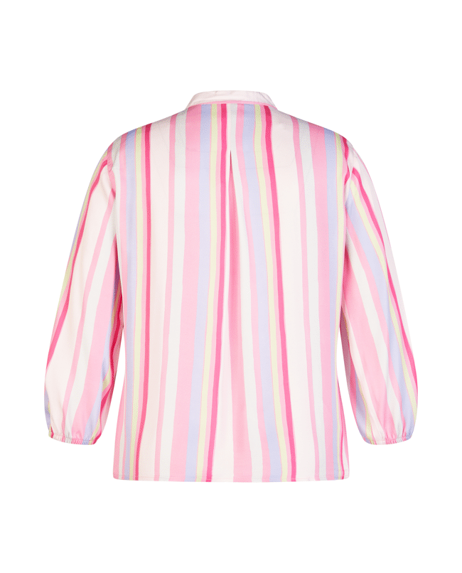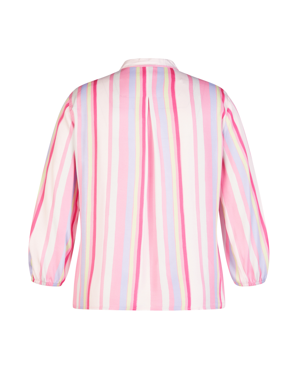 Deze kleurrijke blousetop met verticale strepen brengt direct energie in je outfit. Licht en luchtig – perfect voor zonnige dagen of een zomerse werklook.