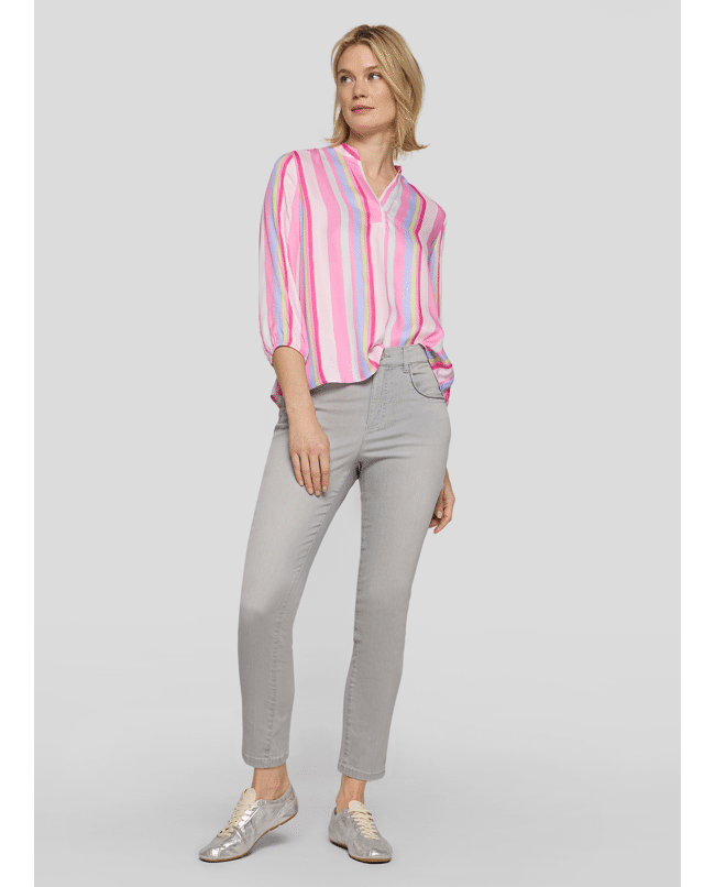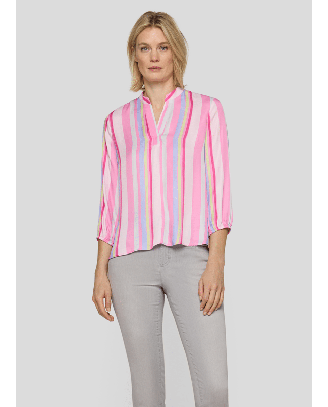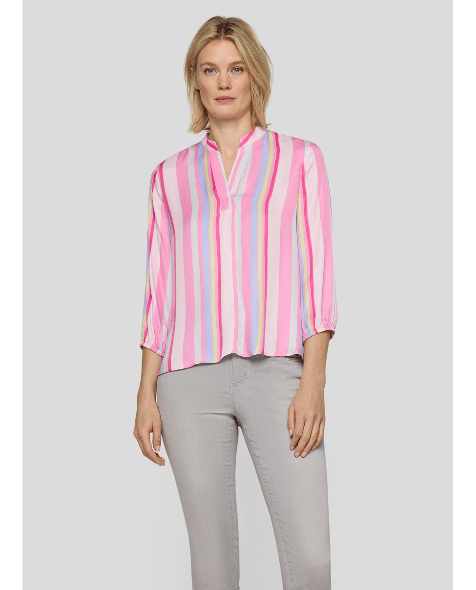 Dames blousetop van Rabe met verticale strepen, 3/4 mouwen en V-hals met kraagdetail