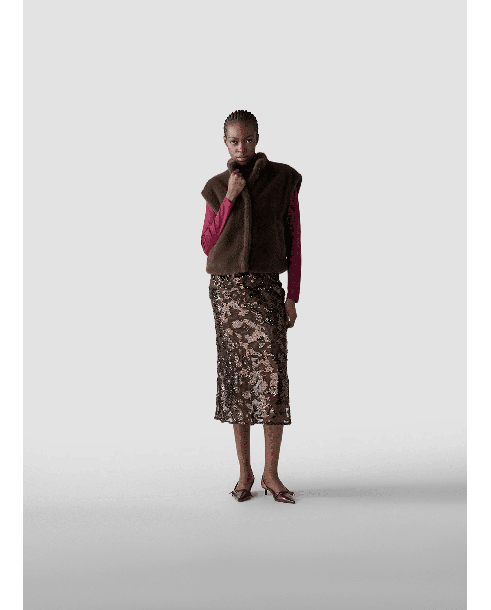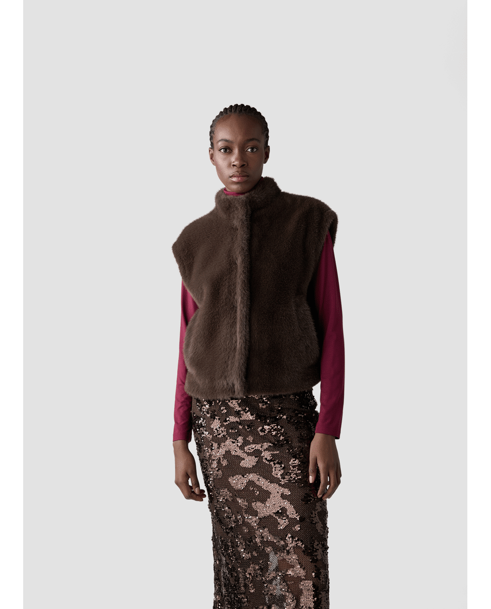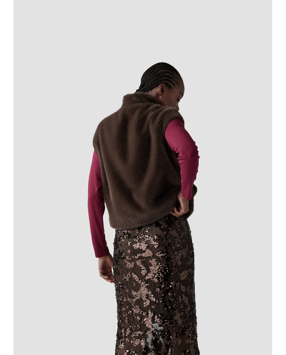 Dames bodywarmer van LeComte met imitatiebont, verborgen sluiting, opstaande kraag en steekzakken