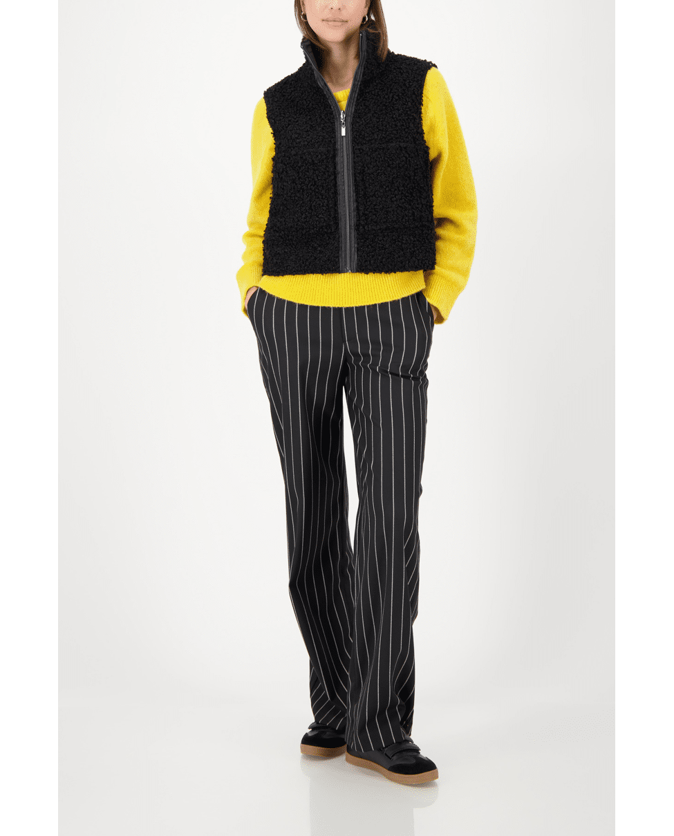 Dit gevoerde vest van Monari is stijlvol én praktisch. Draag ‘m als extra laag op frisse dagen of als eyecatcher over een trui. Perfect voor herfstwandelingen of casual city looks.