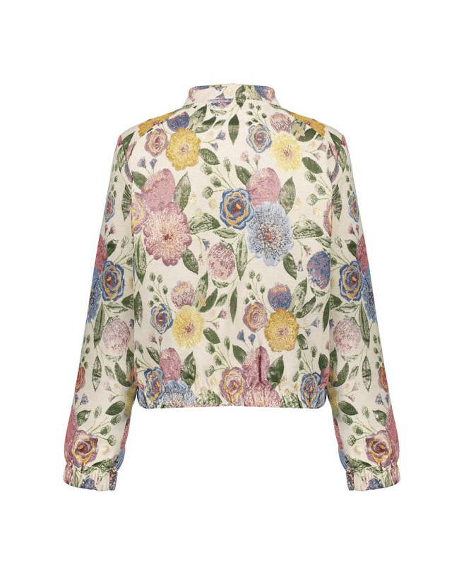 Op zoek naar een jas met karakter? Dit bomberjack met rijke bloemenprint is een opvallende keuze voor frisse lentedagen of een zwoele zomeravond.