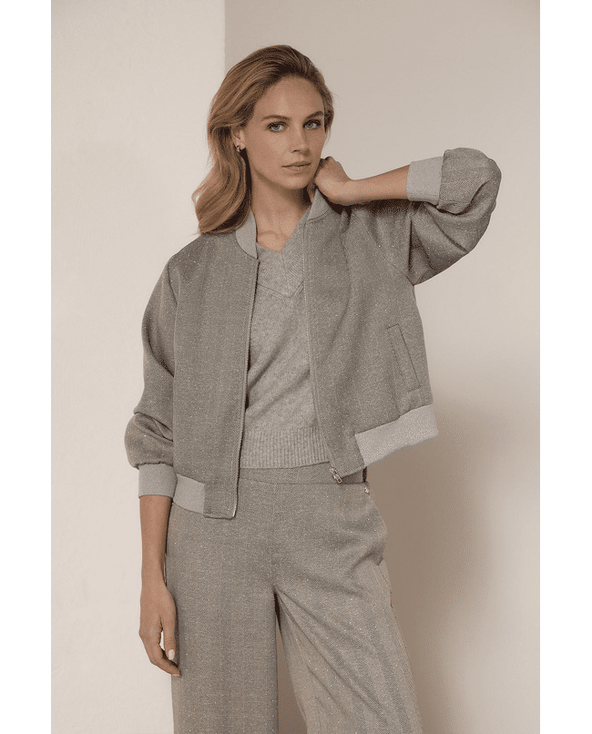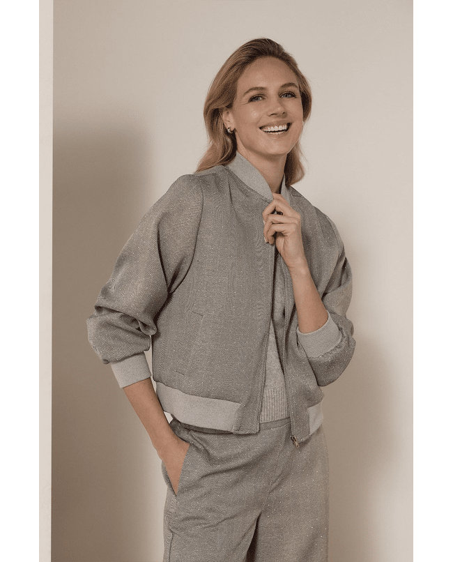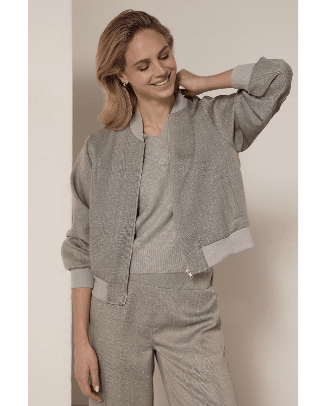 Dames bomber jasje van Tramontana met visgraatmotief, siersteentjes, lange mouwen, steekzakken en ritssluiting