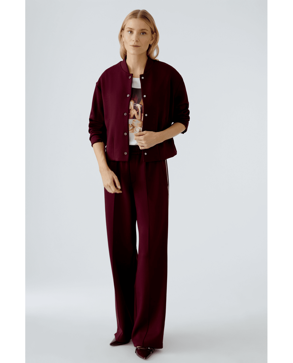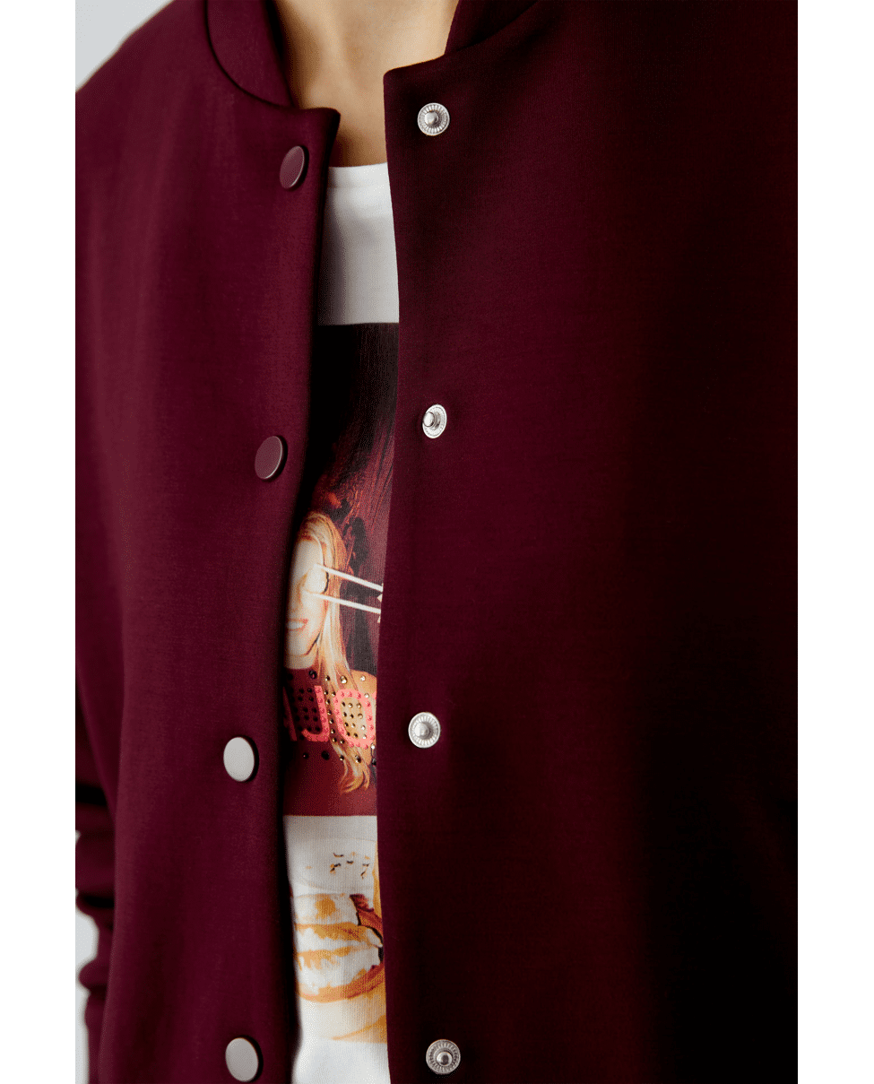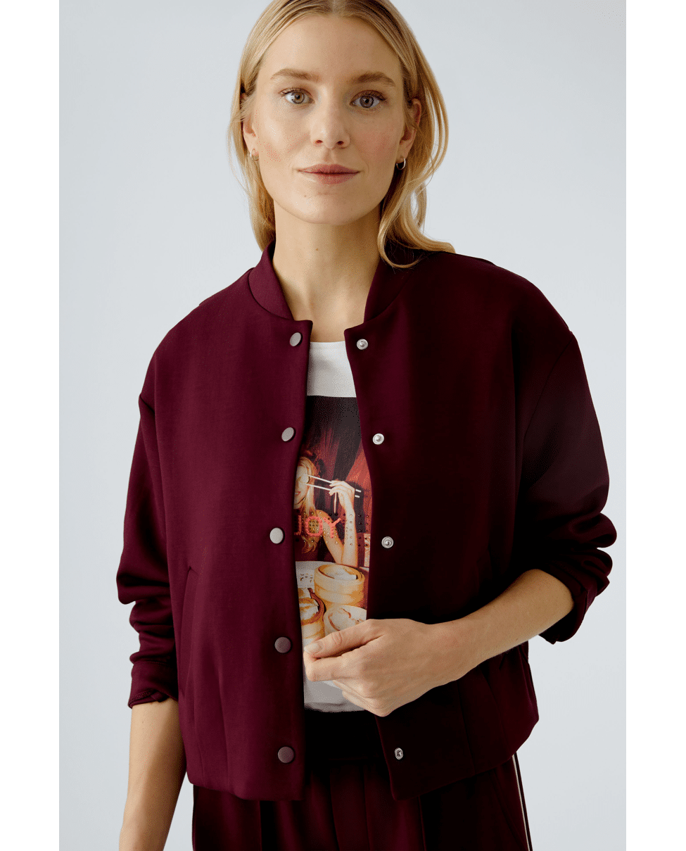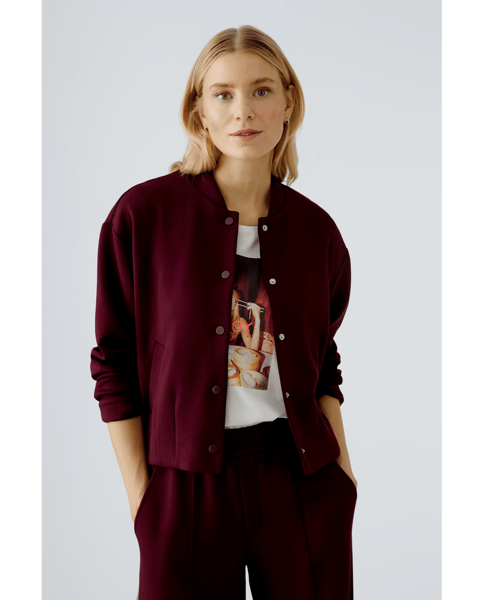 De diepe kleur en zachte stretchstof geven deze bomber een chique, comfortabele uitstraling – makkelijk te stylen bij elke outfit.