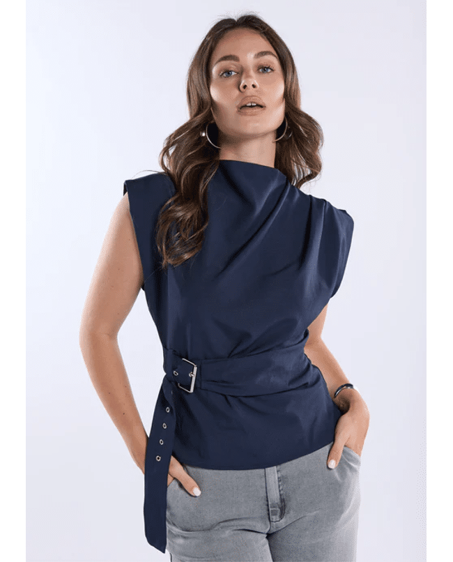 De brede schouders en tailleband met gesp geven deze top een moderne, vrouwelijke uitstraling. Een item dat direct klasse toevoegt aan je outfit.