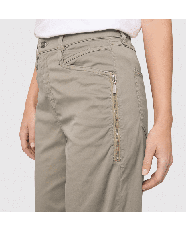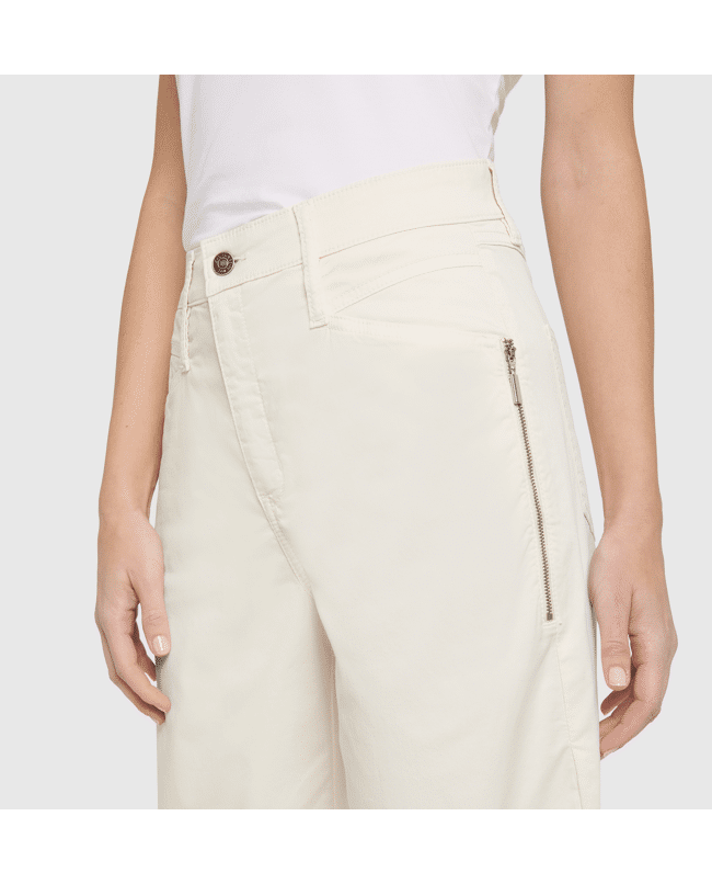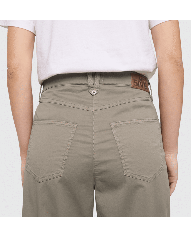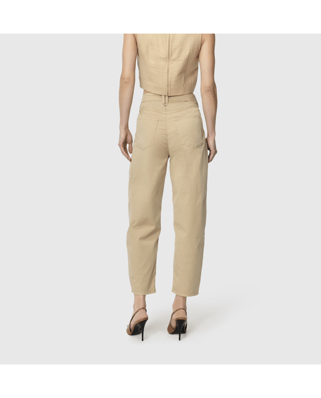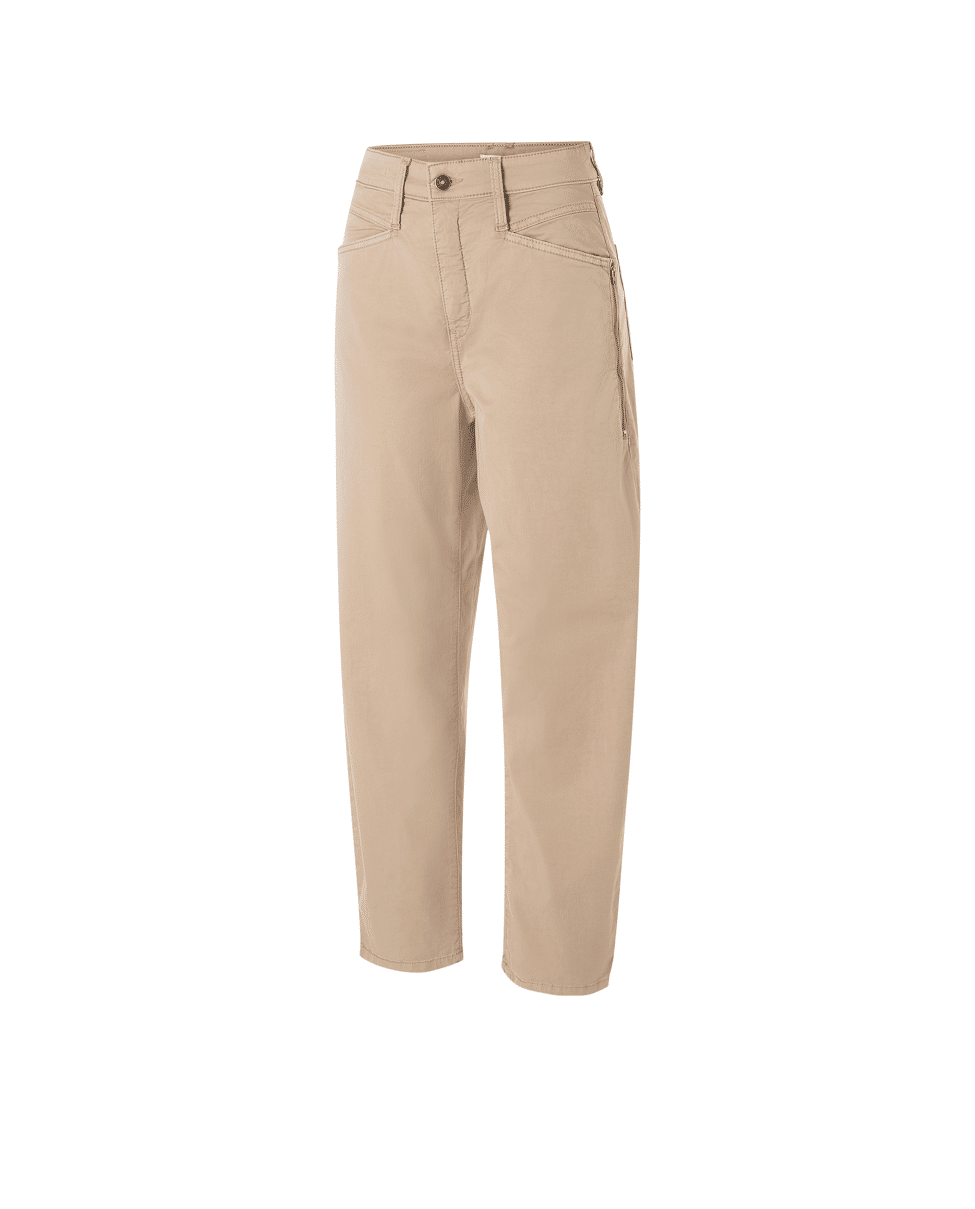 Relaxed fit met volumineuze pijp en taps toelopend been. Hoge taille voor een flatterend effect.