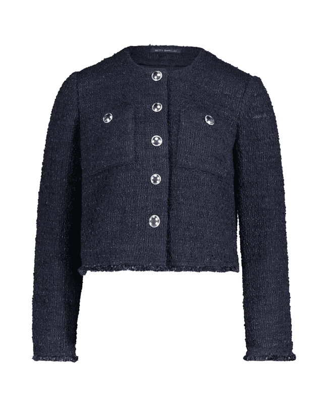 Bouclé dames jasje van Betty Barclay met opgestikte borstzakken, ronde halslijn, knoopsluiting en lange mouwen
