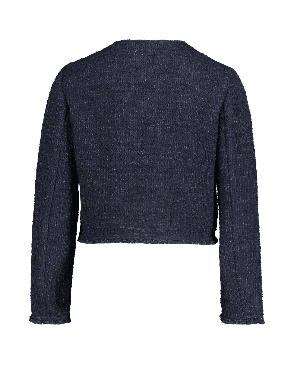 De boucléstructuur en de chique knopen geven dit jasje een elegante, Franse flair – ideaal voor een geklede maar comfortabele look.