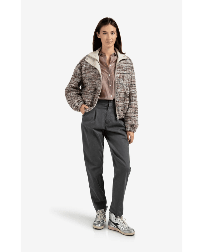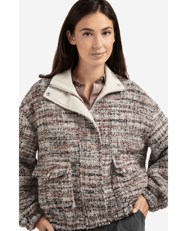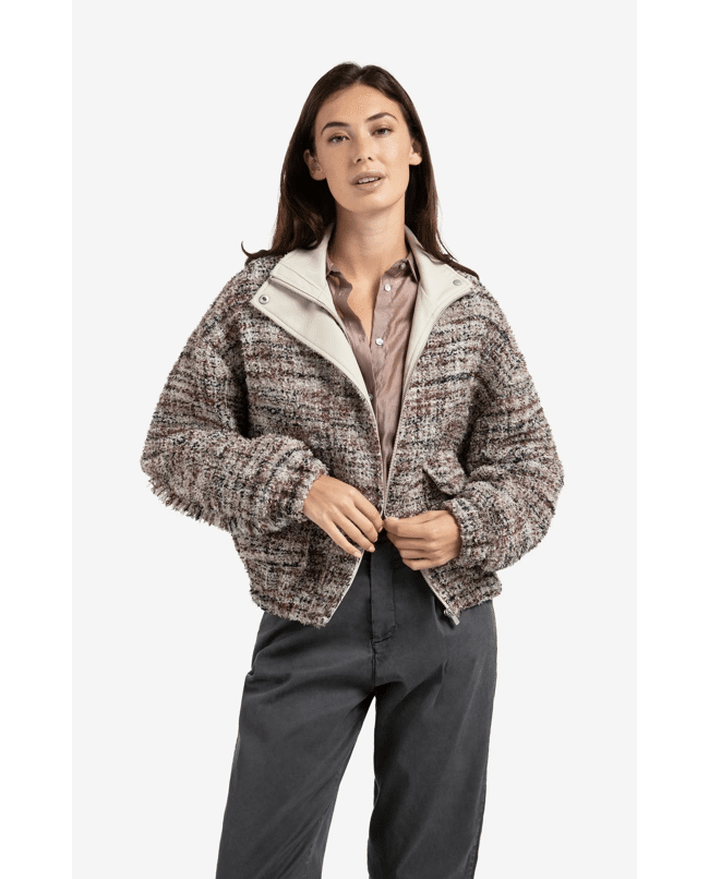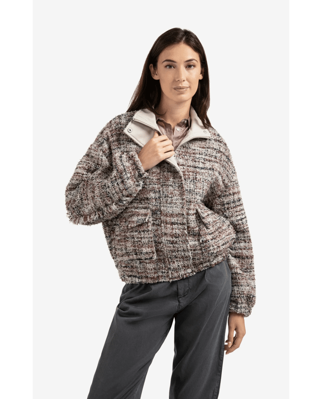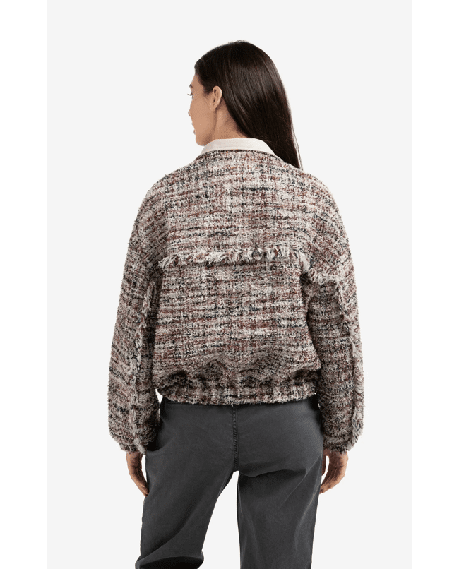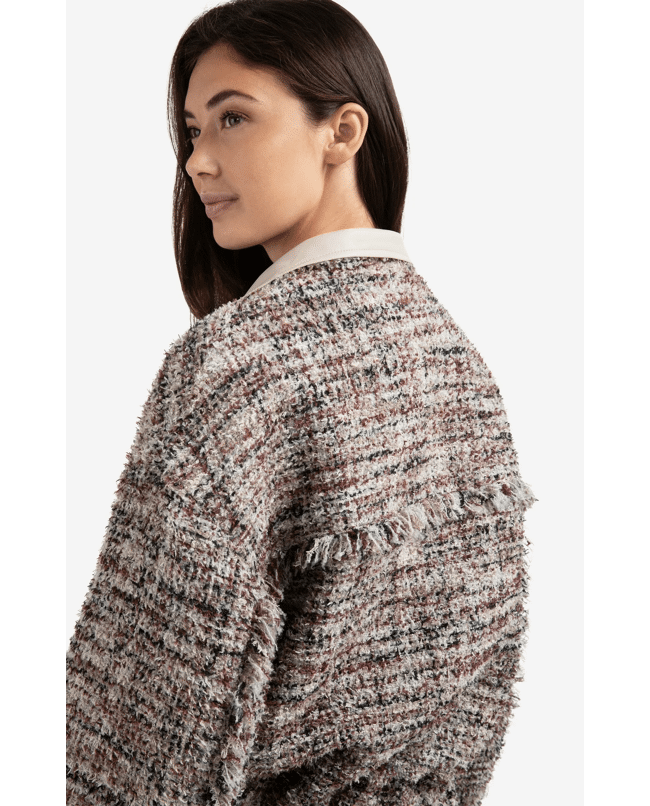 De bouclé textuur en subtiele franjes zorgen voor een stijlvolle twist – een jasje dat je outfit direct naar een hoger niveau tilt.