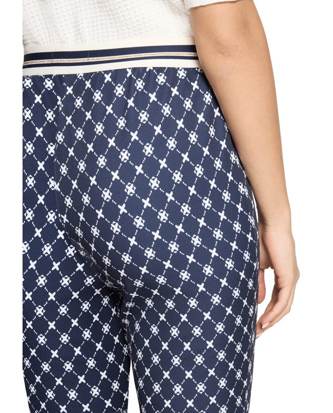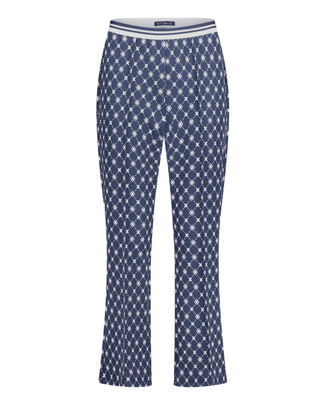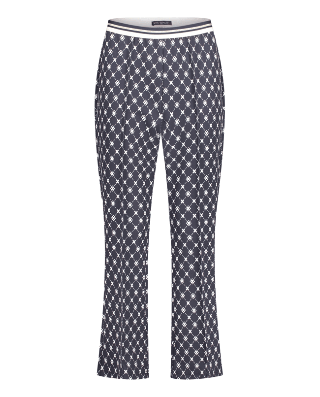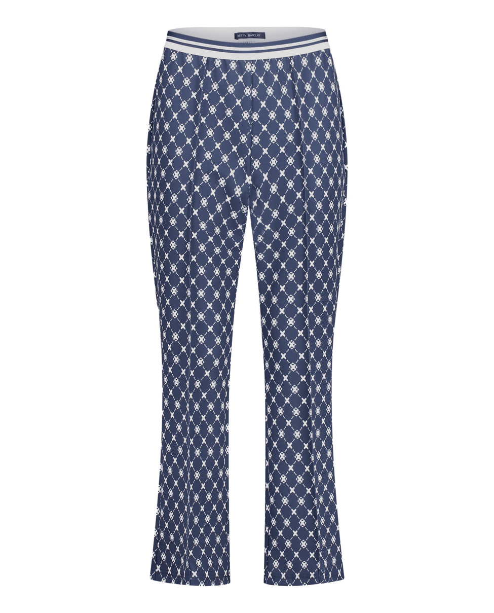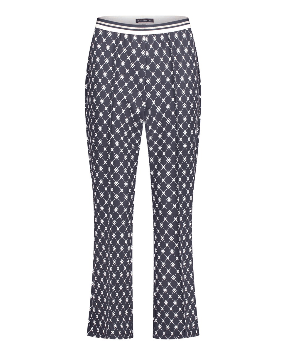 Damesbroek van Betty Barclay met sportieve elastische tailleband, 3/4-lengte, grafisch patroon en hoge taille