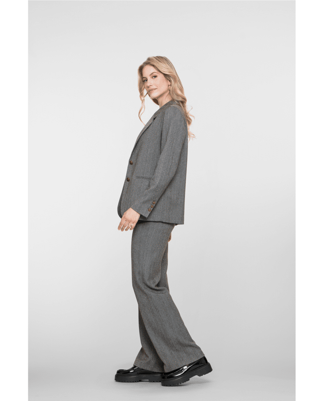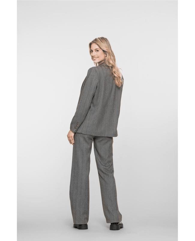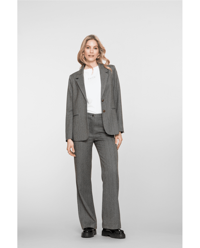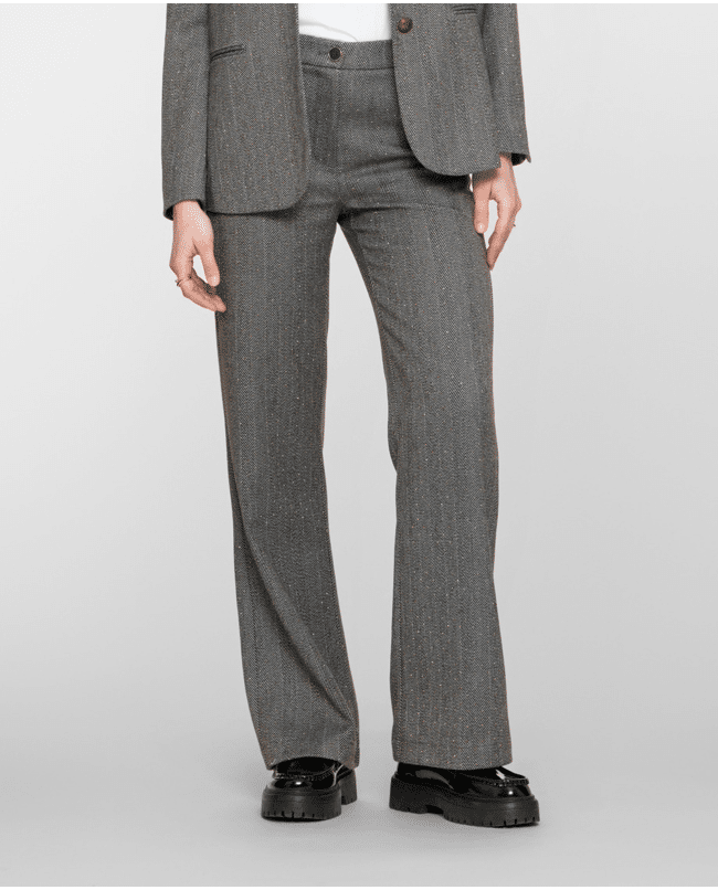 De combinatie van visgraat en glinsterende details geeft deze broek een moderne, chique uitstraling.