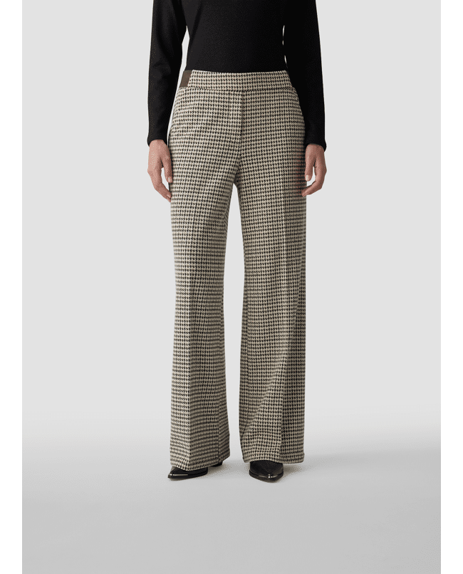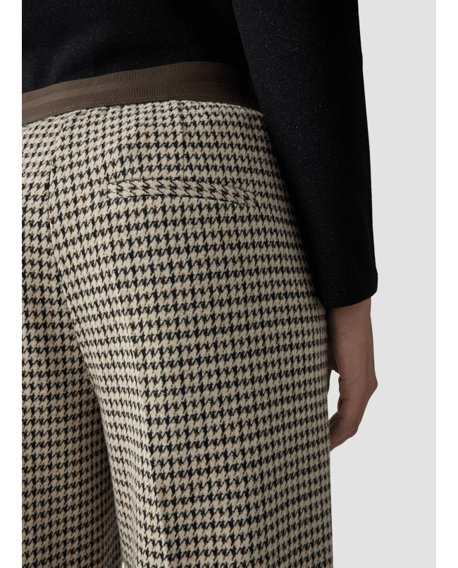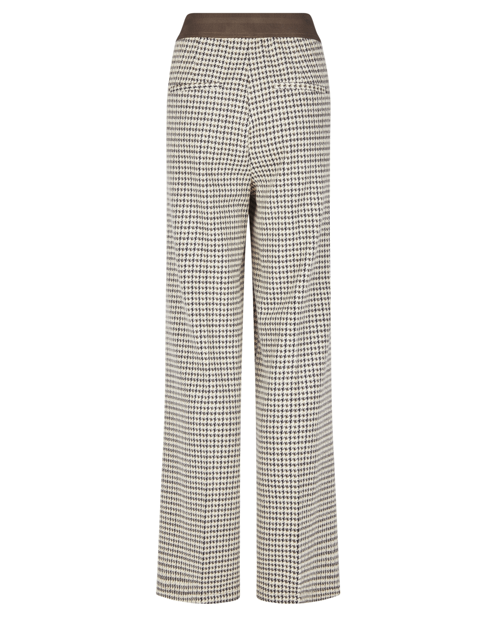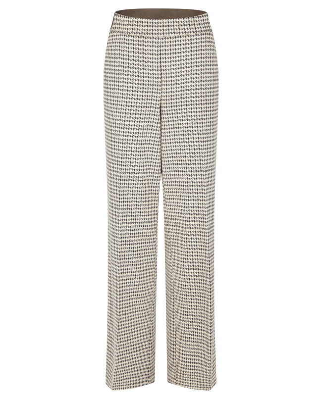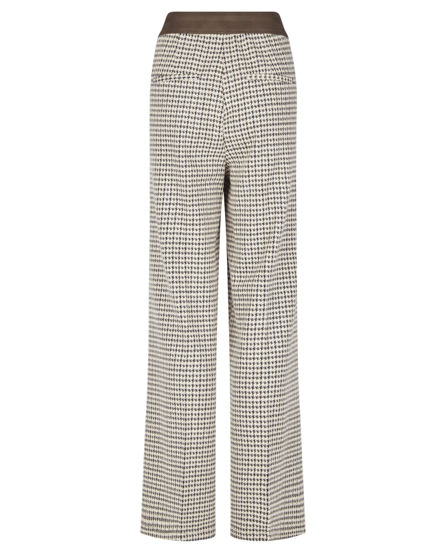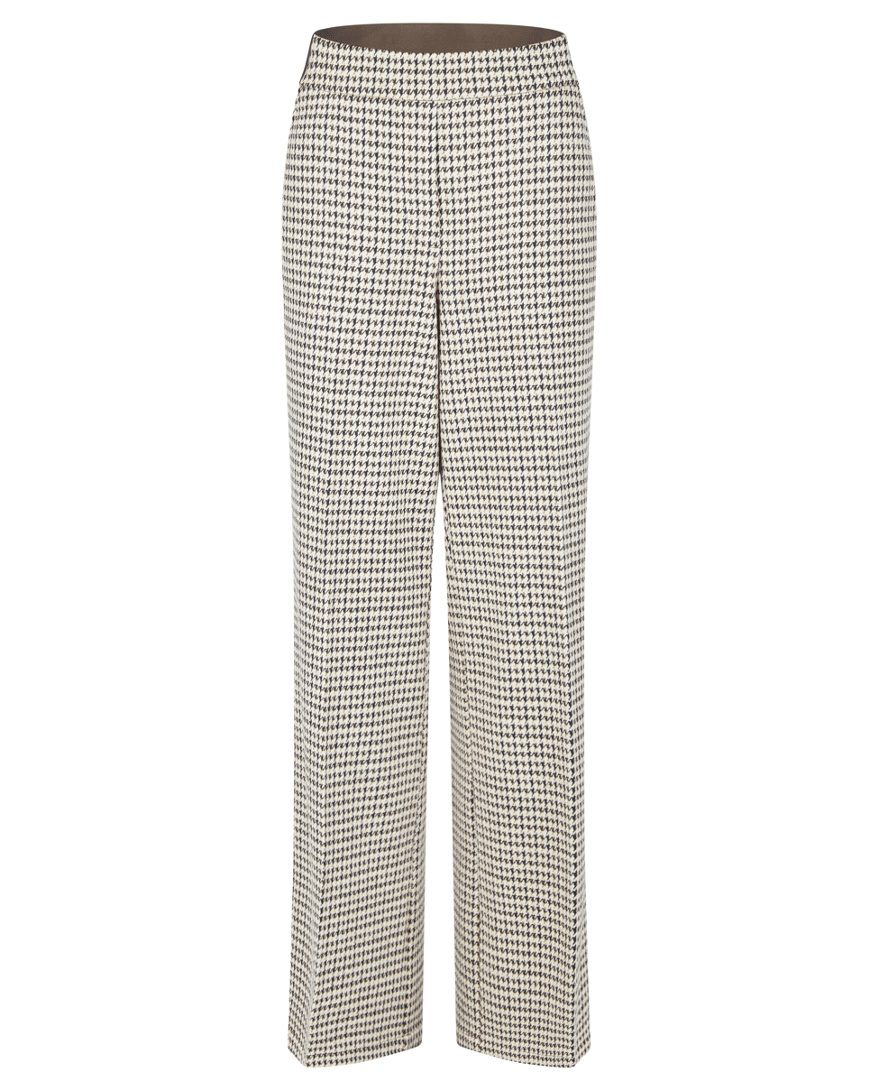 Damesbroek van LeComte met Pied-de-poule dessin, rechte wijde pijpen en contrasterende in de tailleband