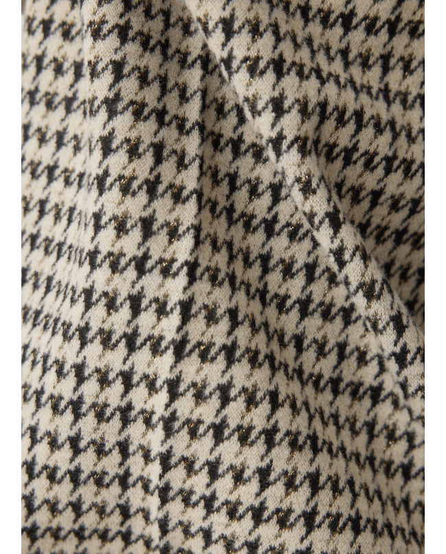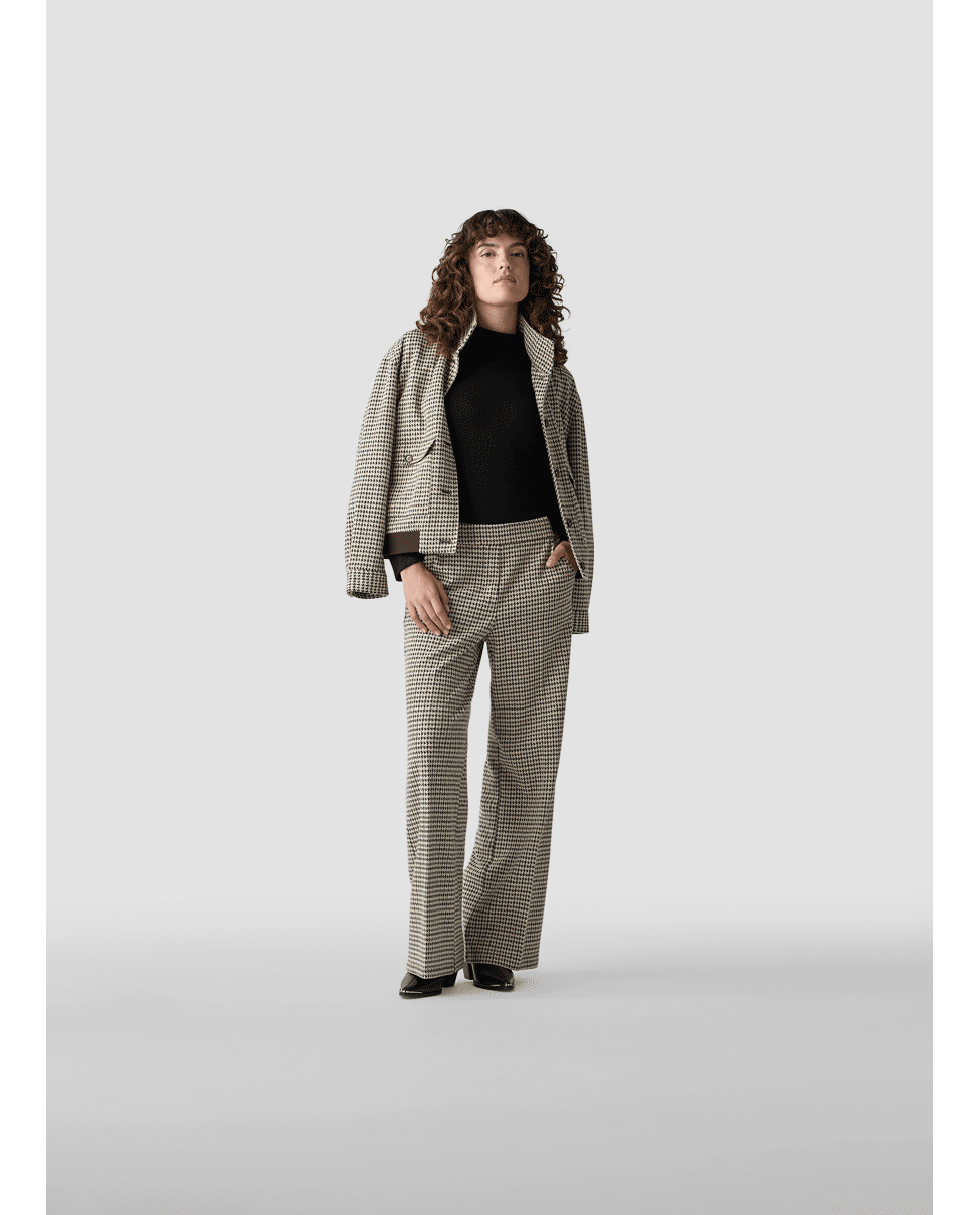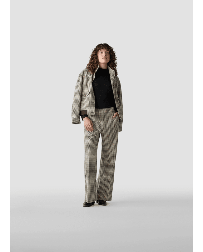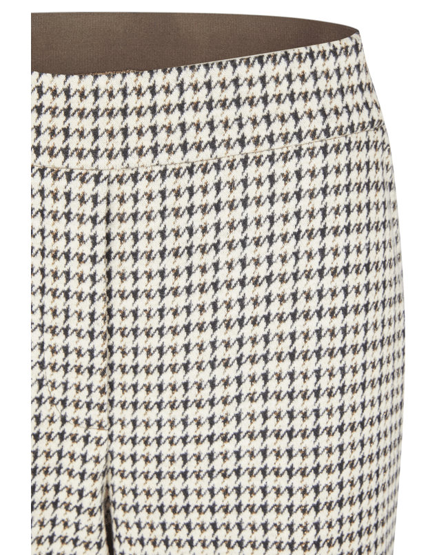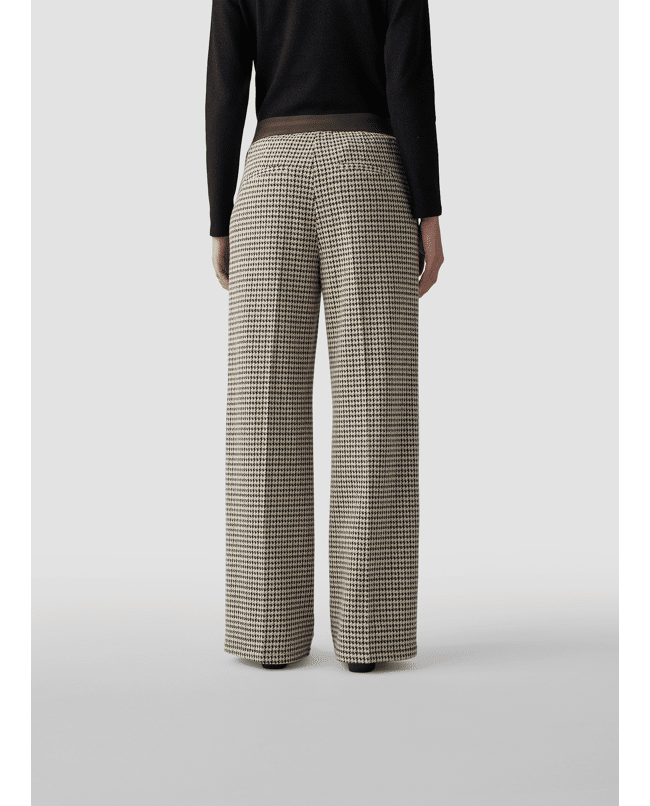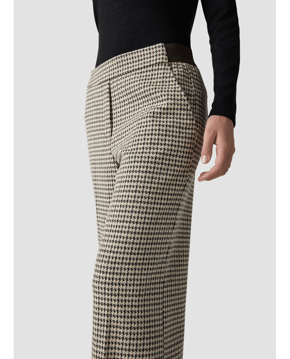 Damesbroek van LeComte met Pied-de-poule dessin, rechte wijde pijpen en contrasterende in de tailleband