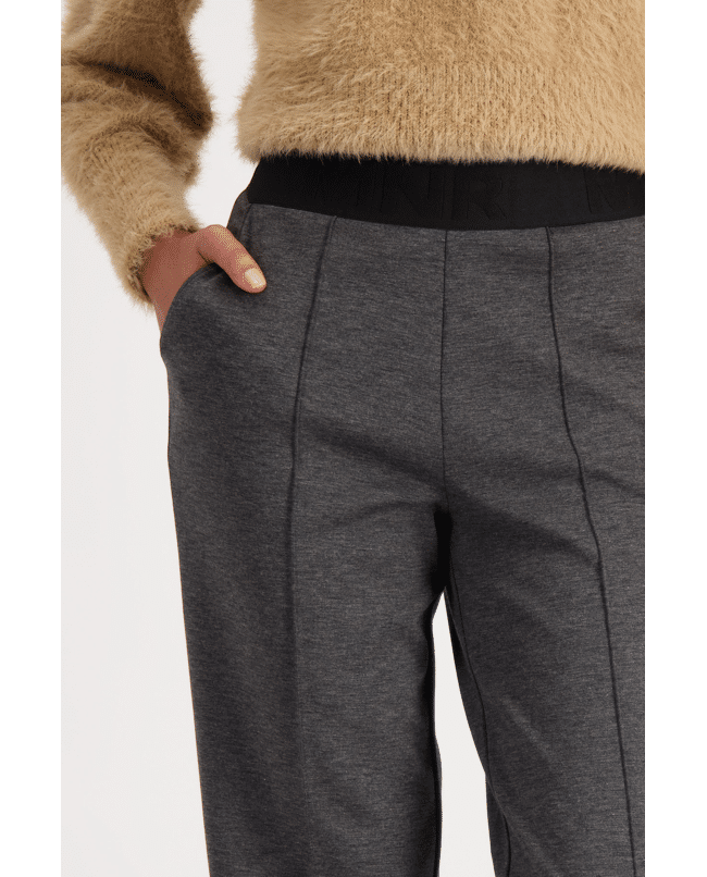 De zichtbare naden en tekstdetail geven deze broek een eigentijdse look. Combineer met een zachte knit of blouse voor een casual-chique outfit.