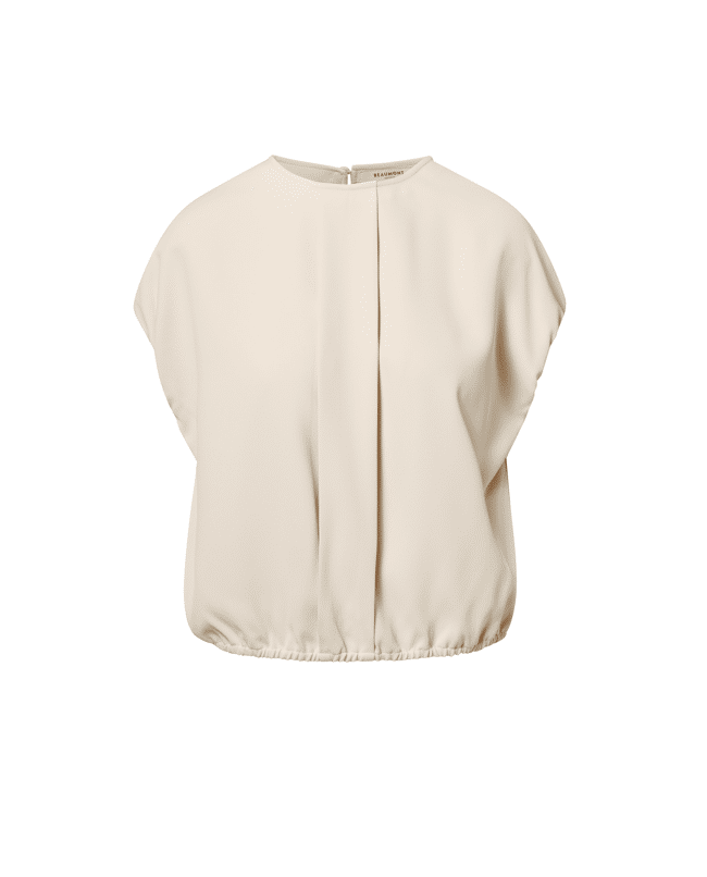 CANNES - Damestop van Beaumont met plooidetail, ronde hals, elastiek in de zoom en korte mouwen