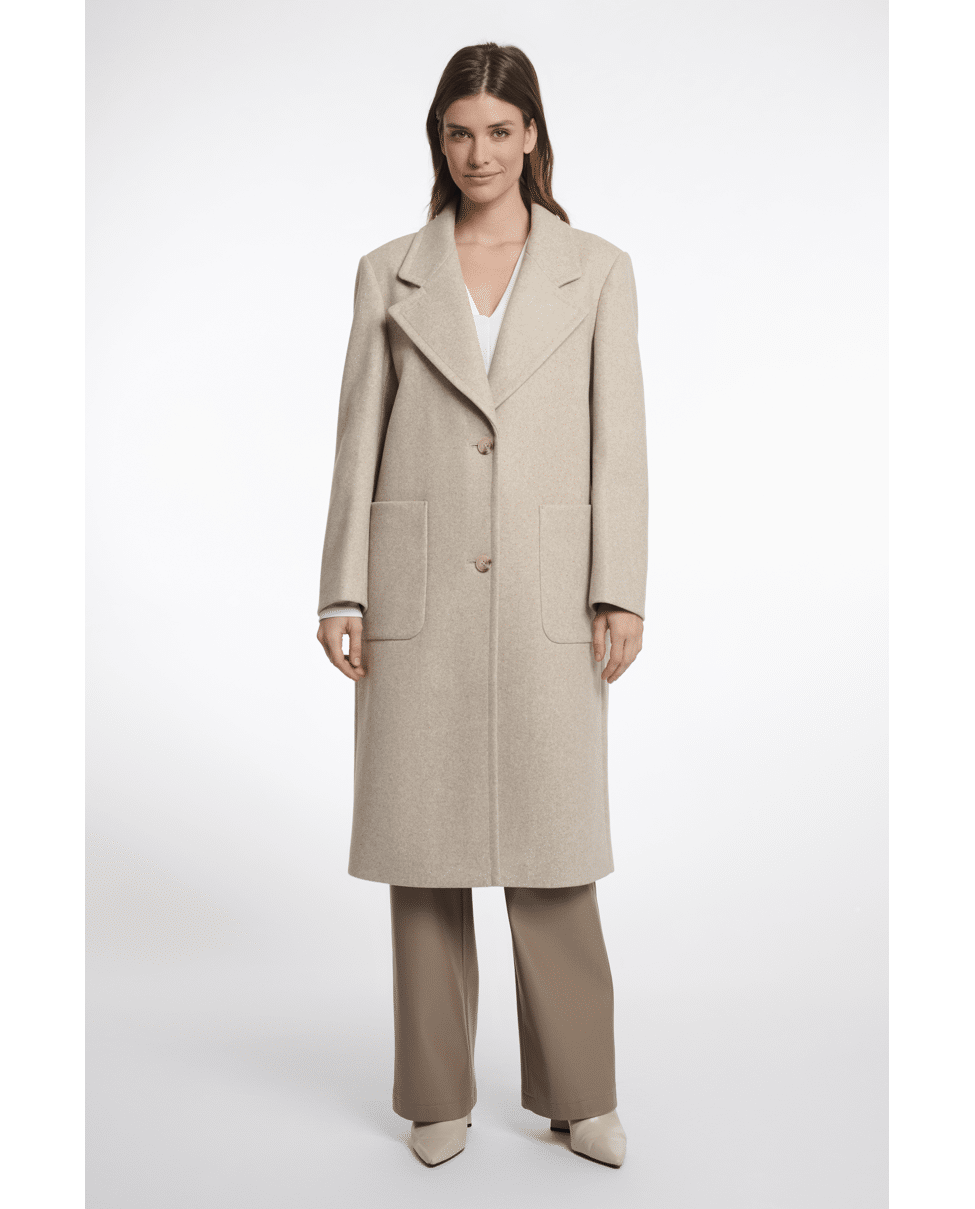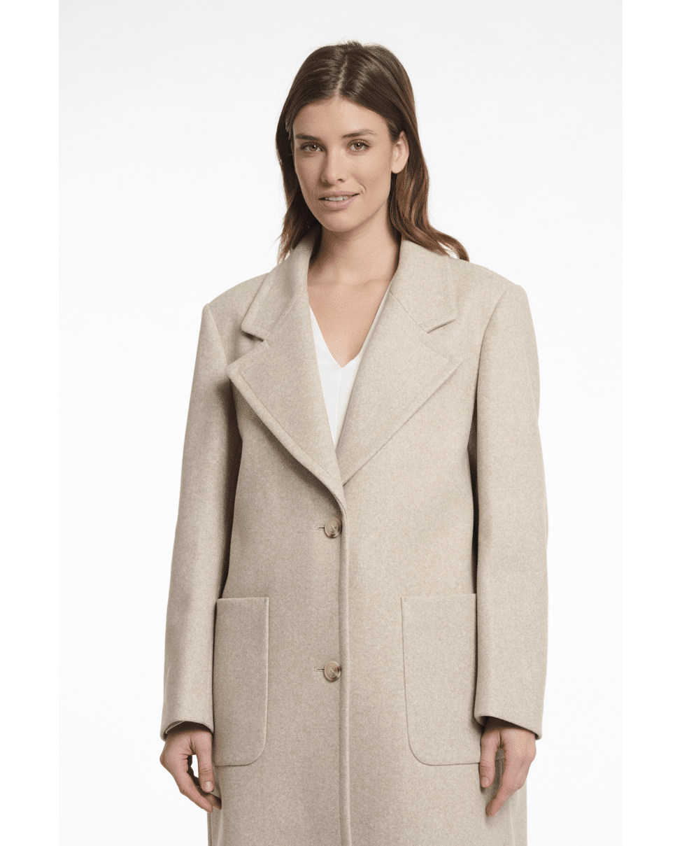 De melangekleur en klassieke snit maken deze jas tot een veelzijdig item dat moeiteloos combineert.