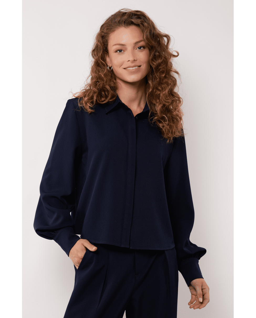 De Christina blouse is een elegante klassieker in diepblauw. Ideaal voor je werkweek of een avondje uit. Voor vrouwen die houden van verfijning met comfort.