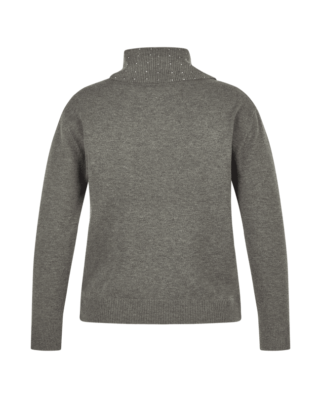 Deze trui heeft een elegante col met subtiele glinsterende steentjes. Een comfortabele en stijlvolle keuze voor de koudere maanden.