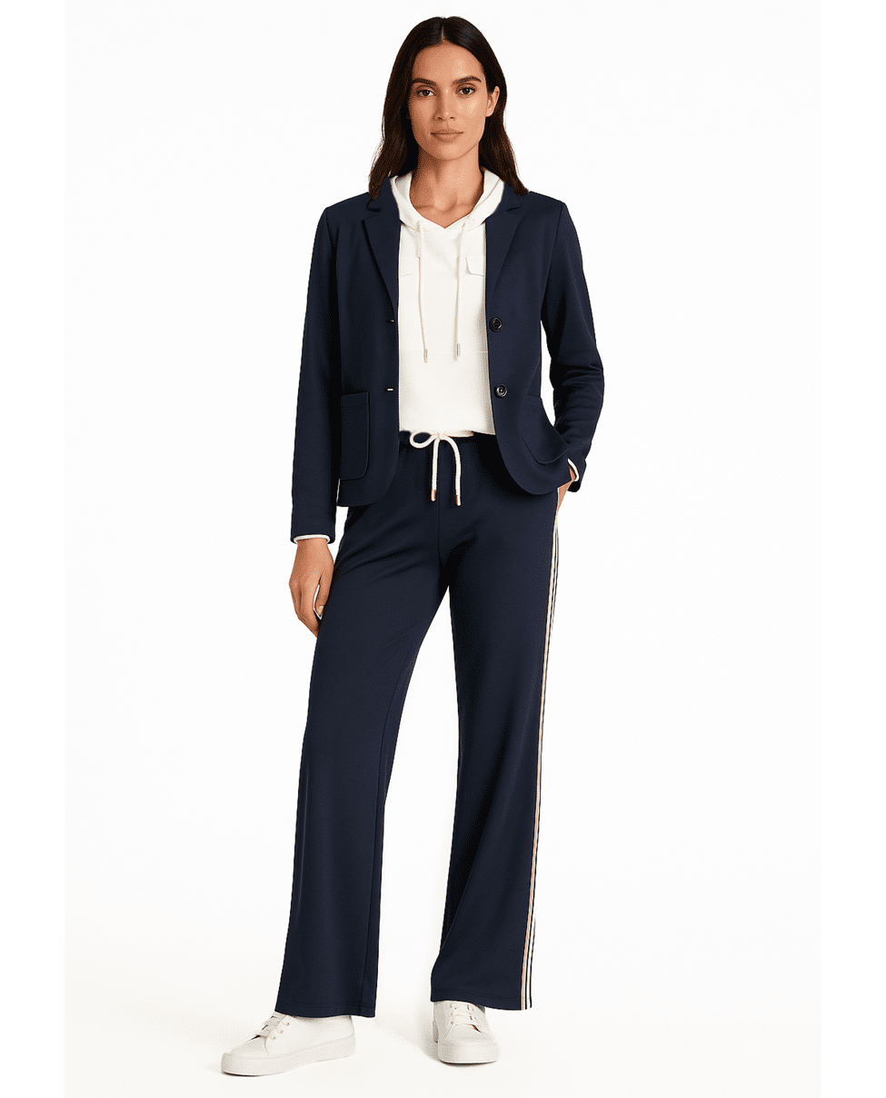 Deze comfortabele broek is perfect voor ontspannen dagen. De zachte jersey en elastische tailleband zorgen voor een relaxte fit met een stijlvolle uitstraling.