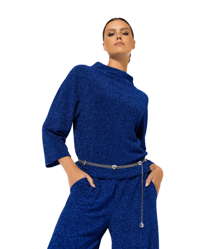 Een elegante korte top met glittereffect, gemaakt van rekbare lurex. Ideaal voor feestelijke gelegenheden of een avondje uit.