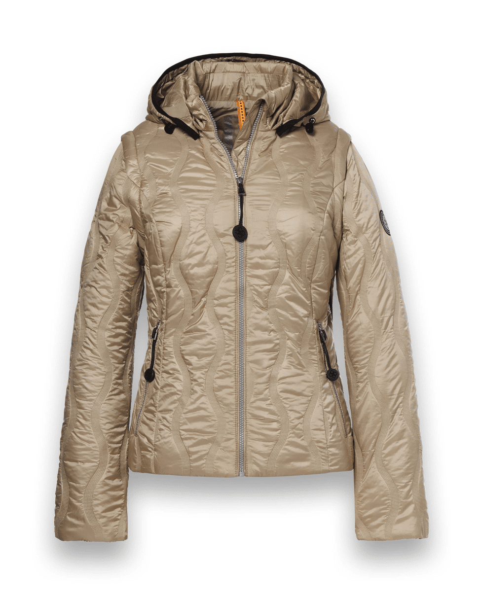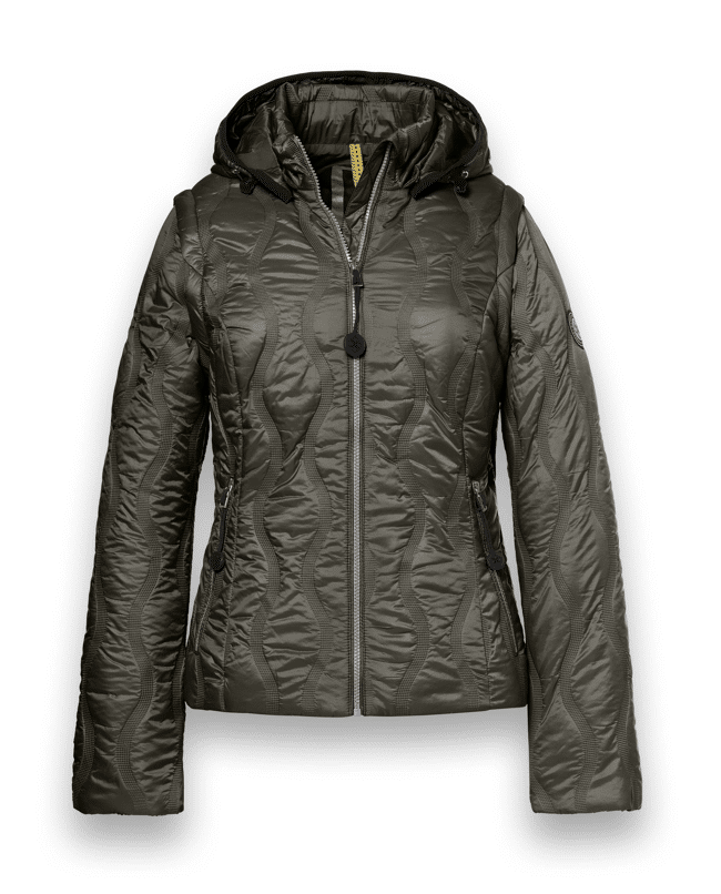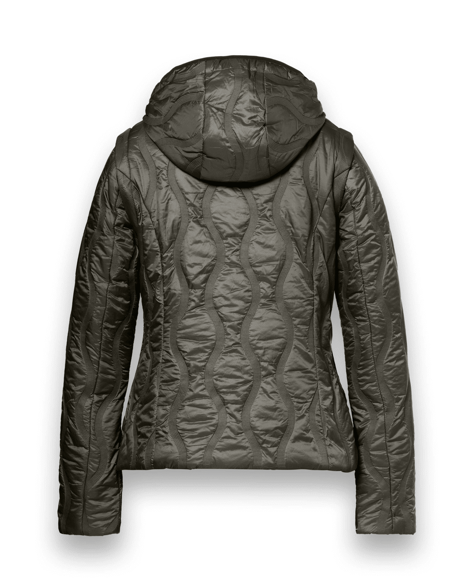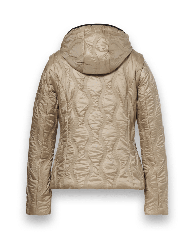 De gewatteerde structuur en glanzende afwerking geven deze jas een moderne look. De capuchon maakt ‘m extra praktisch voor onderweg.