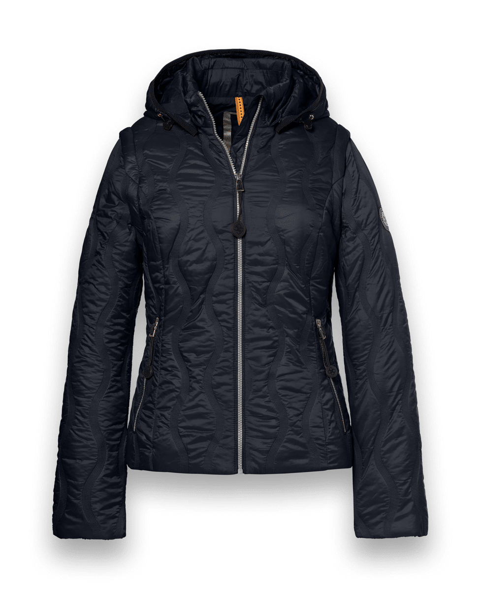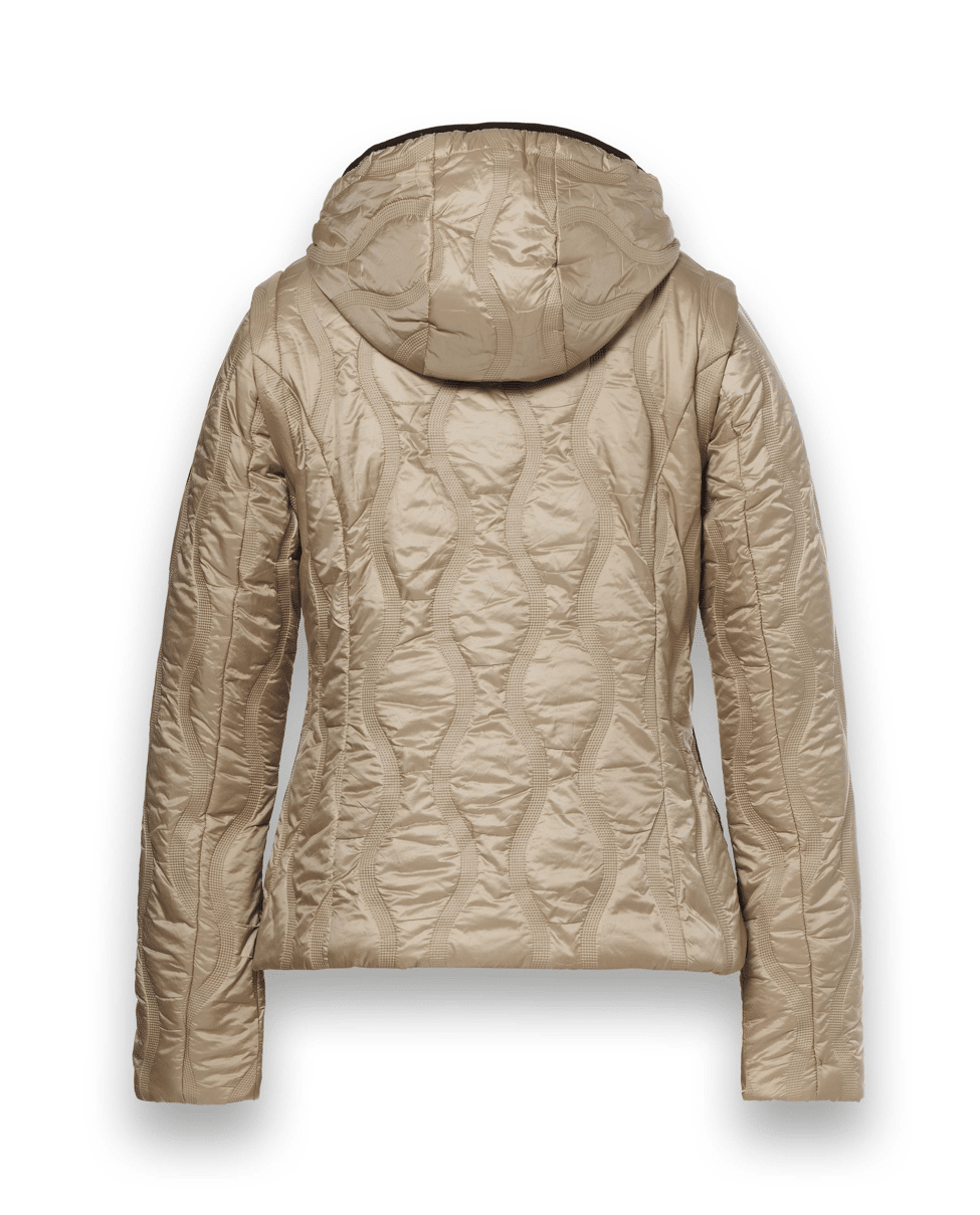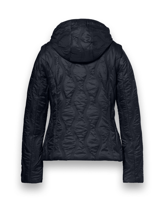 De gewatteerde structuur en glanzende afwerking geven deze jas een moderne look. De capuchon maakt ‘m extra praktisch voor onderweg.