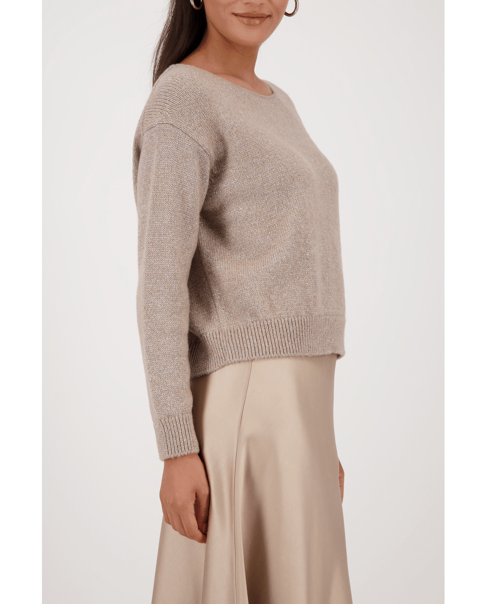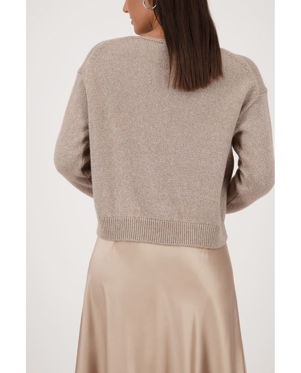 De zachte feel en lichte shimmer maken dit een elegante knit die net zo goed werkt overdag als ’s avonds.