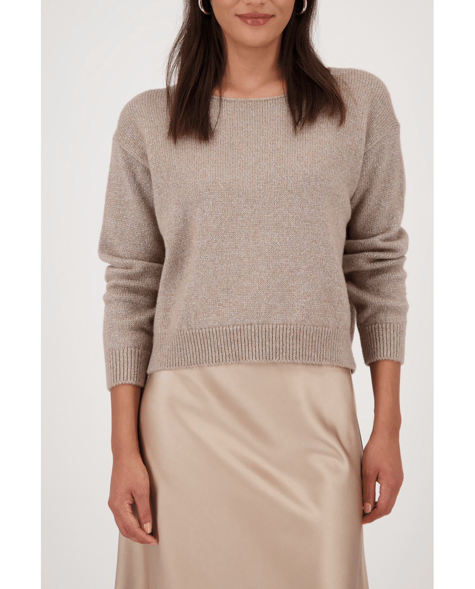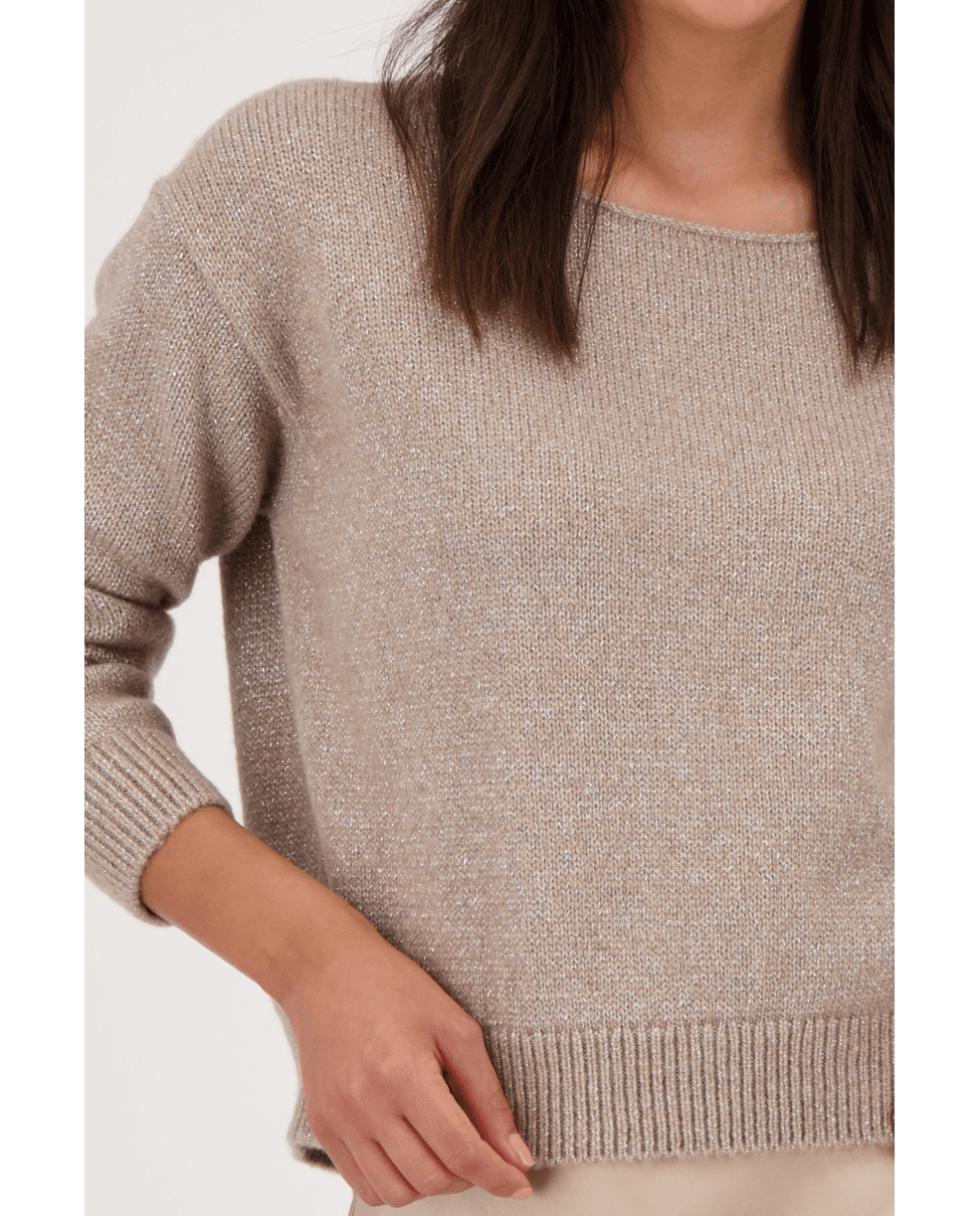 Deze trui is een subtiele basic met een sprankelende twist. De fijne Lurex glans geeft je outfit net dat beetje extra — ideaal voor everyday chic.