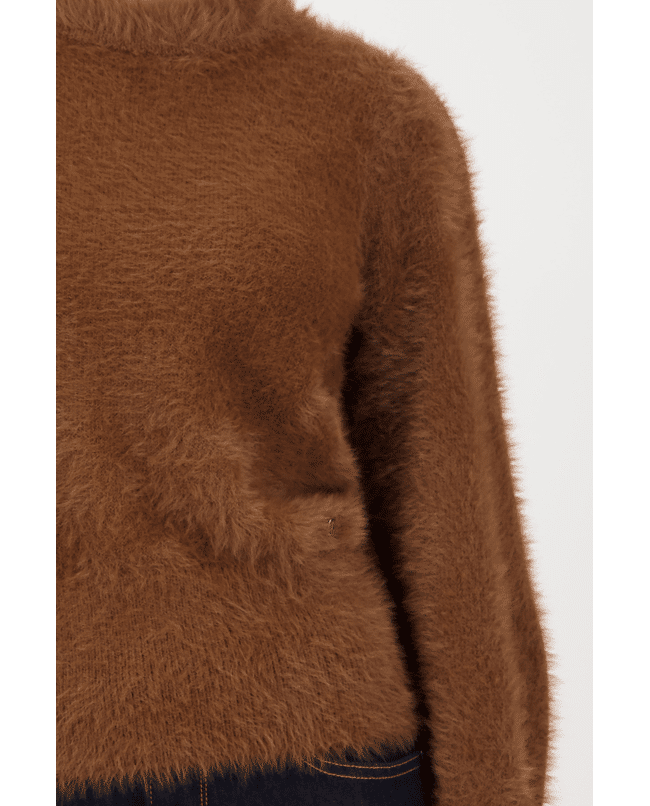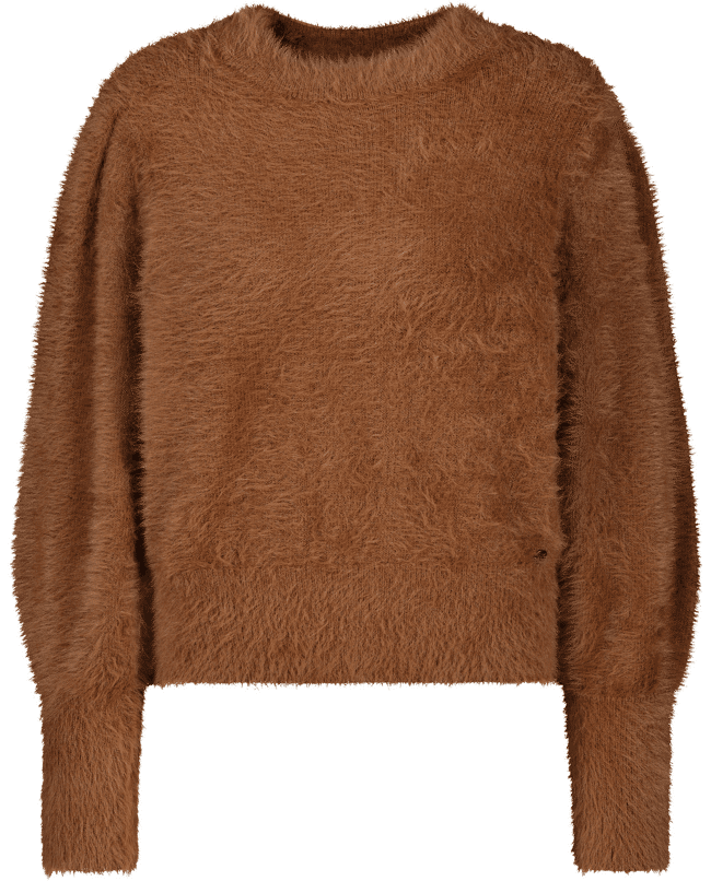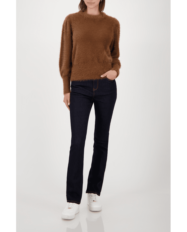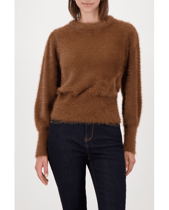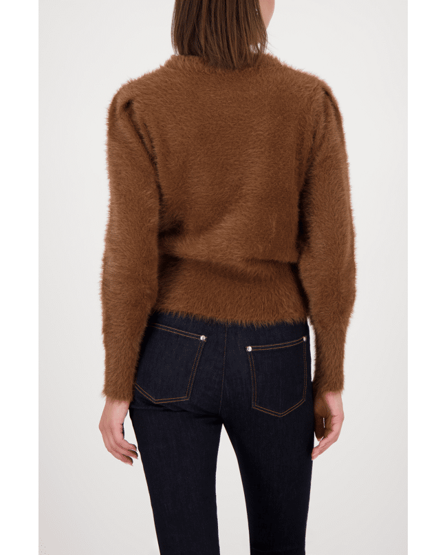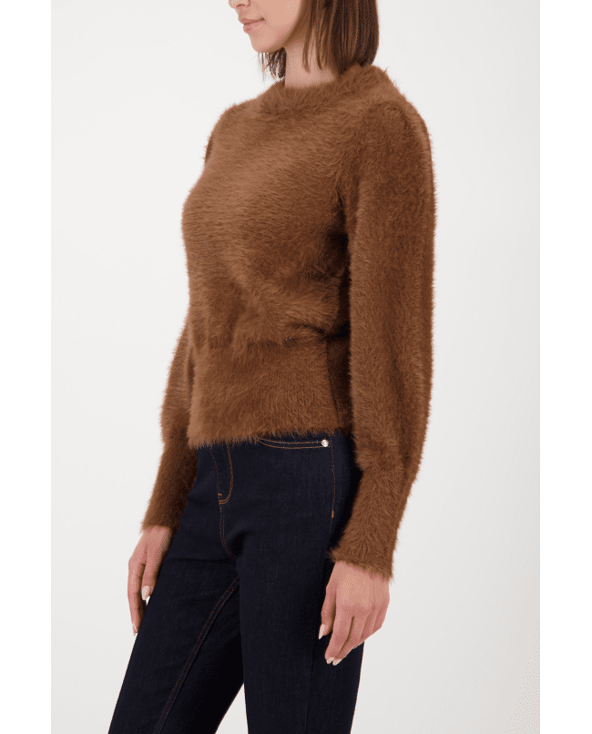 Dames trui van Monari met harige details, ronde hals en lange mouwen