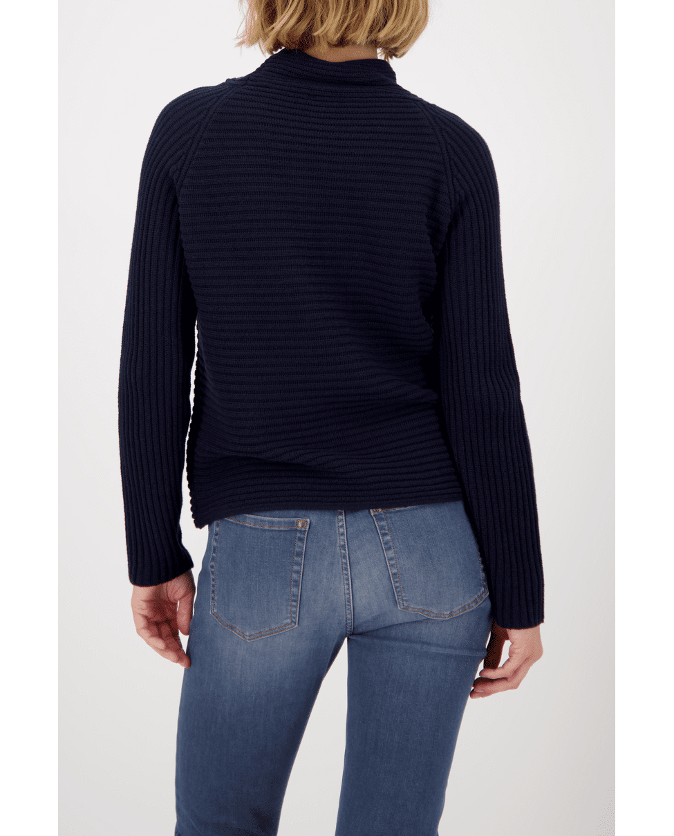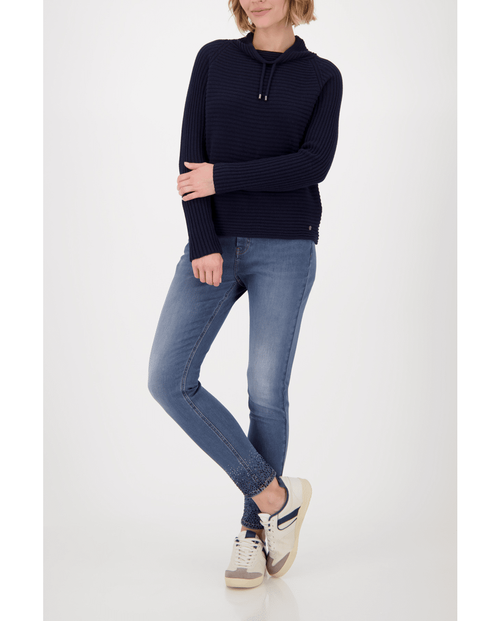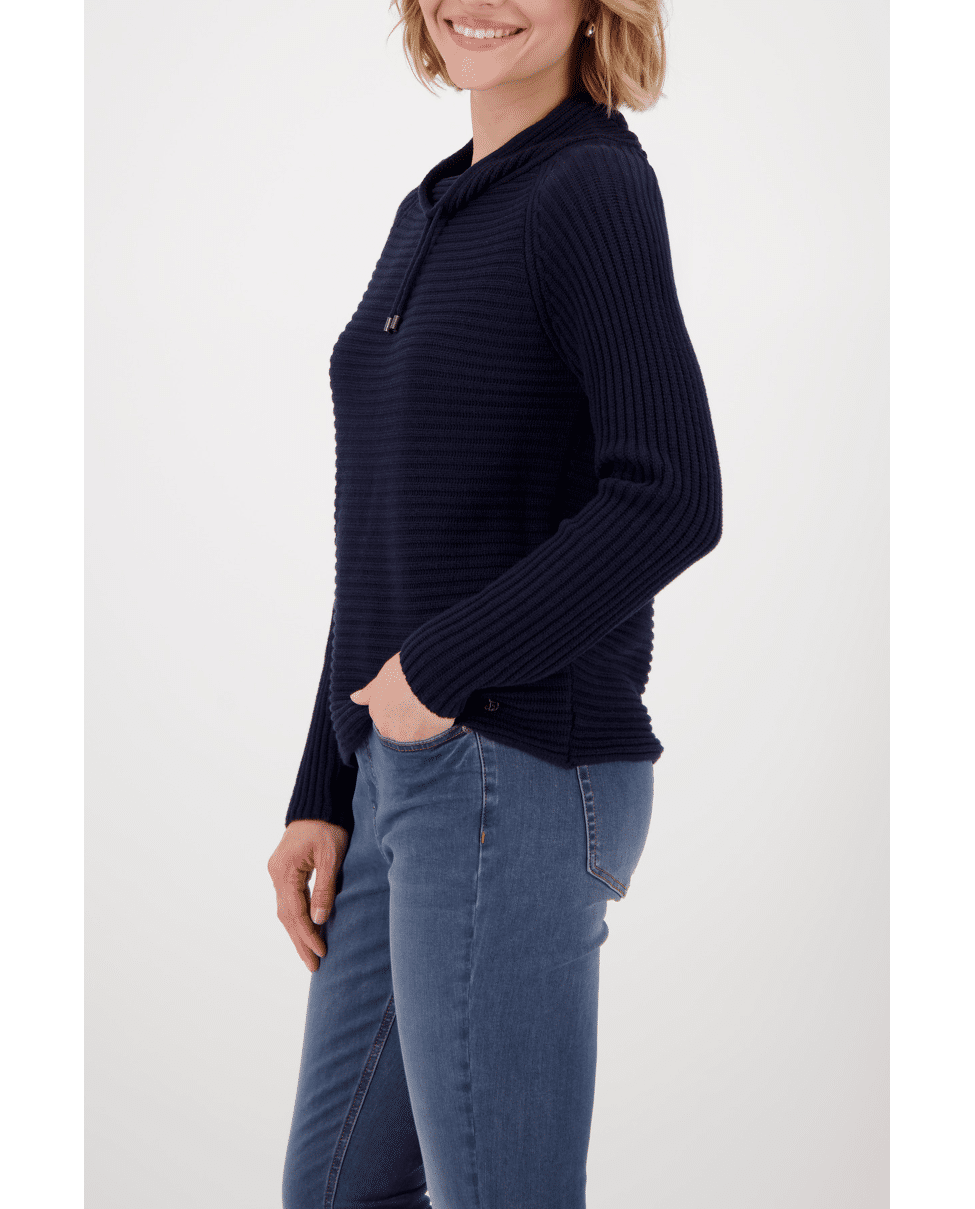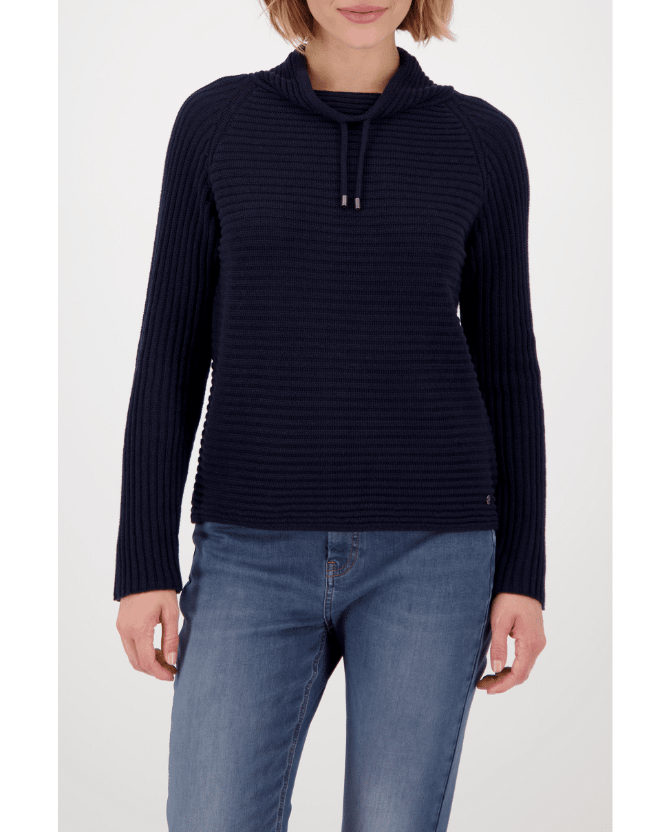 Dames trui van Monari met ribstructuur, kleine col met trekkoord en lange mouwen