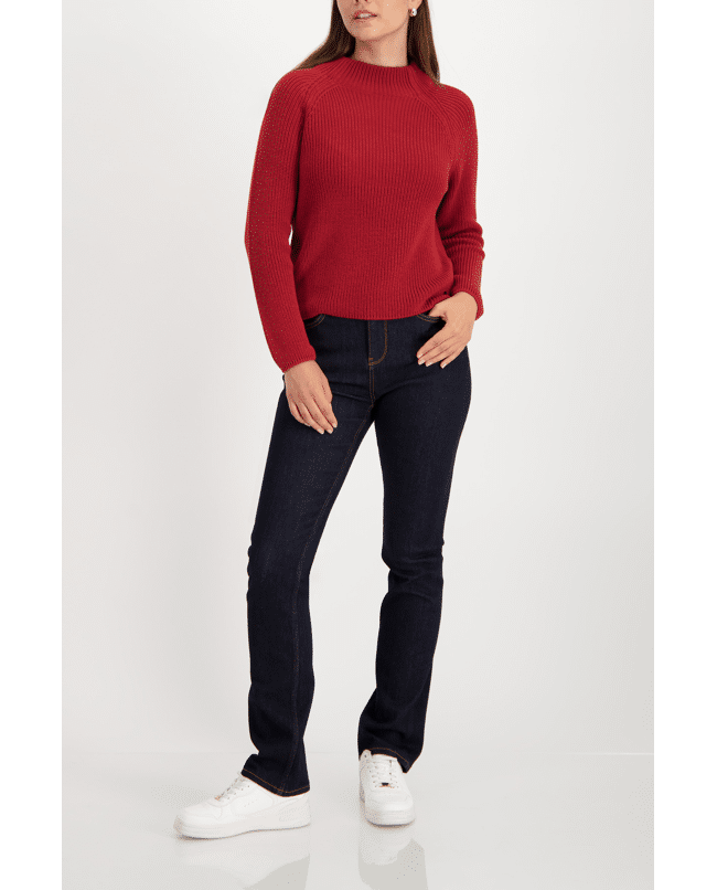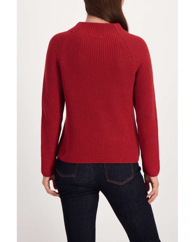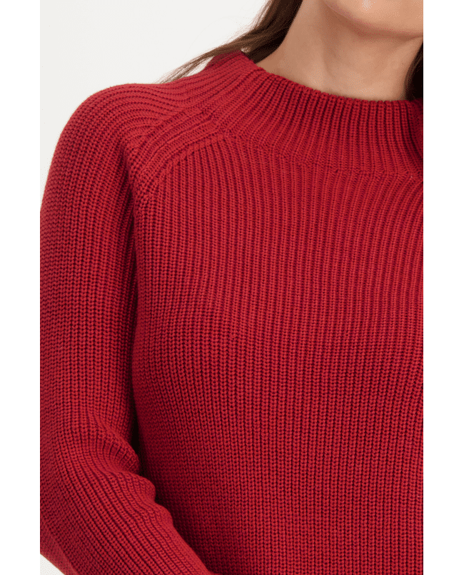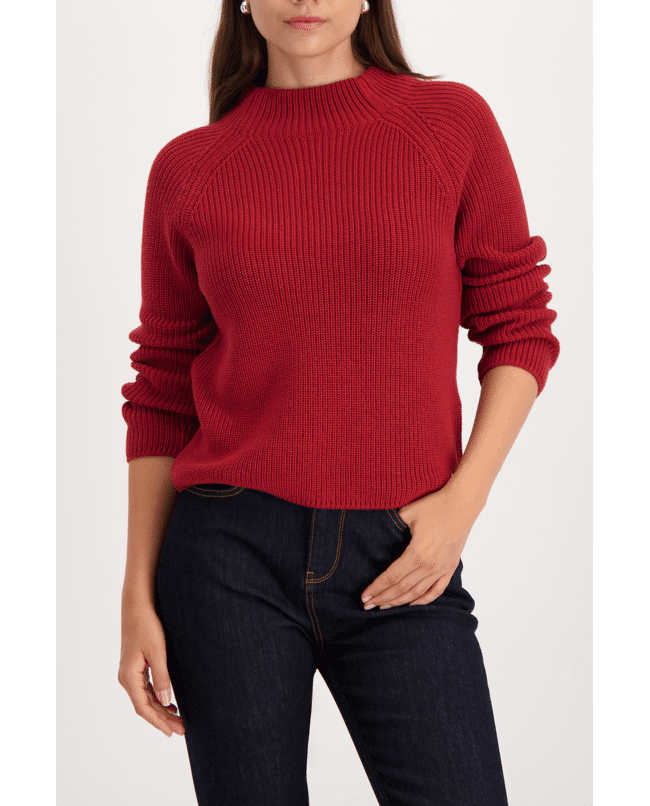 Deze grofgebreide trui is een onmisbare basic voor frisse dagen. De opstaande kraag en raglanmouwen geven het geheel een moderne, casual uitstraling.