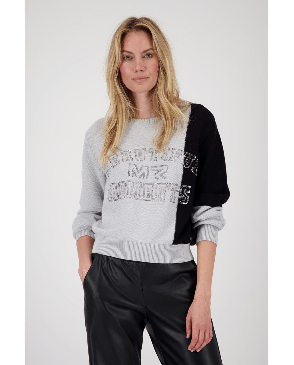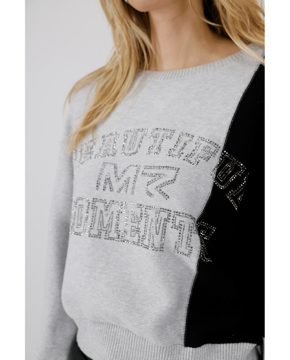 Dames trui van Monari met tekst van strassteentjes