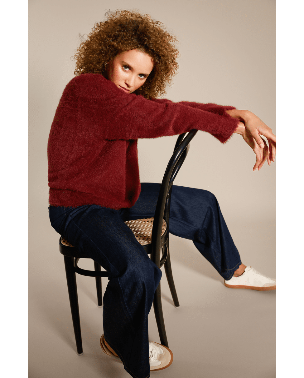 Deze trui voelt net zo knus als hij eruitziet. Met z’n zachte textuur en rijke kleur is dit een warme favoriet voor de herfst en winter.