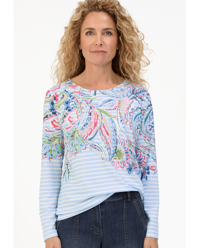 De combinatie van pastelblauwe strepen en levendige bloemenprint geeft dit shirt een zomerse feel. Gemaakt van zachte, ademende jersey.