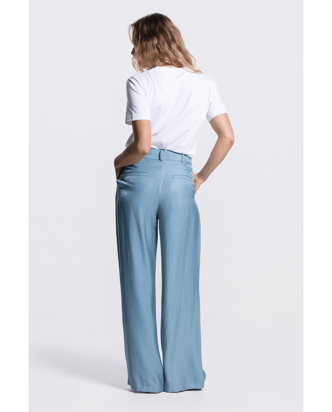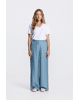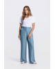 •High waist model met riemlussen en lange wijde pijpen