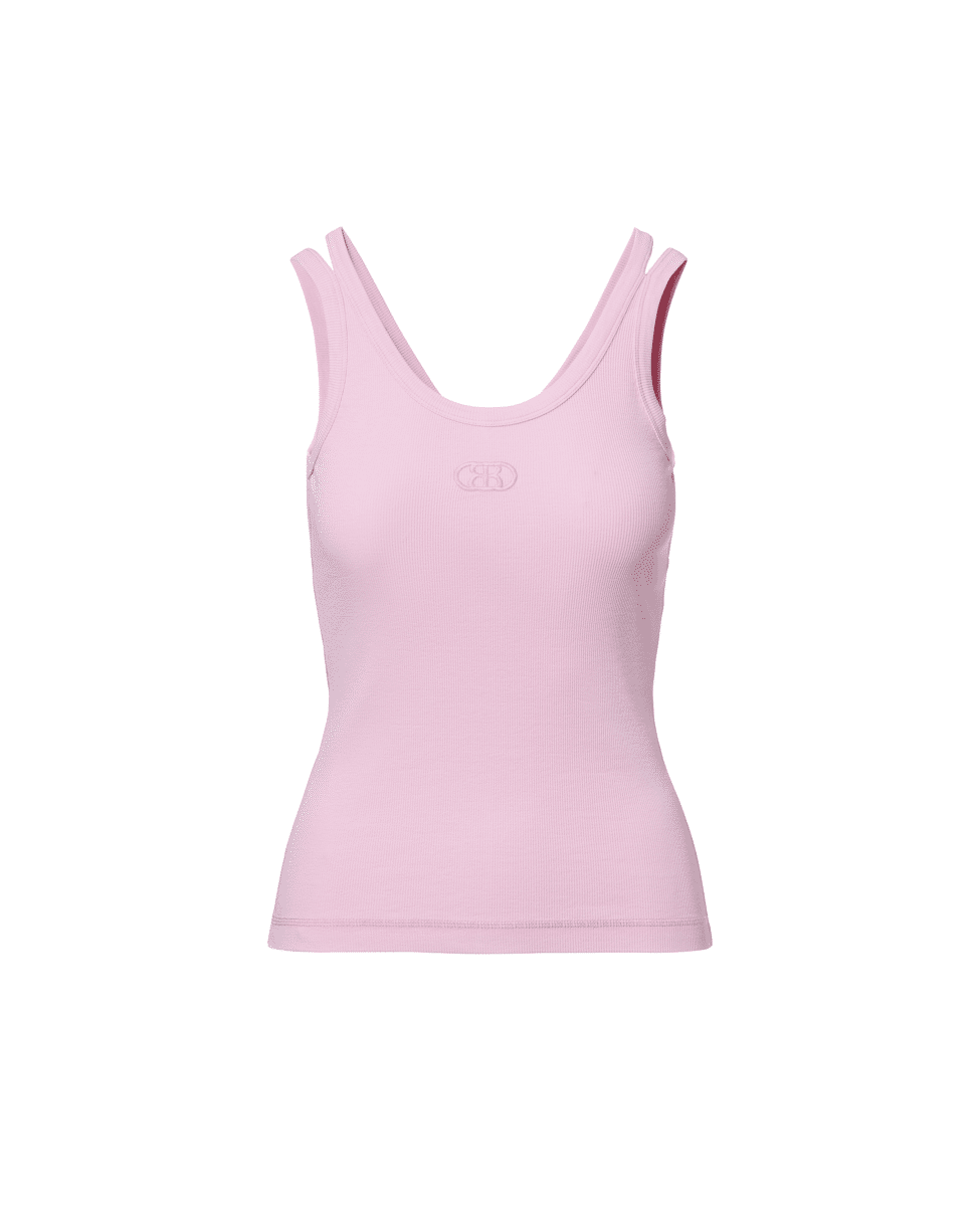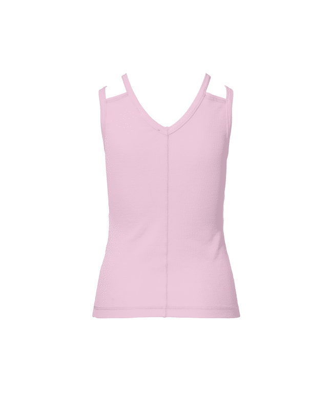 Een zomerse essential met een sportieve twist. Dit aansluitende singlet in roze ribstof is ideaal voor warme dagen of als basislaag onder een blazer.