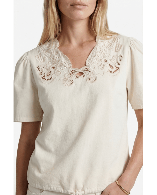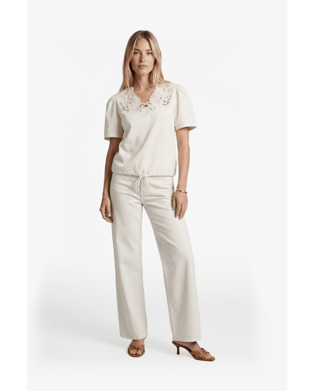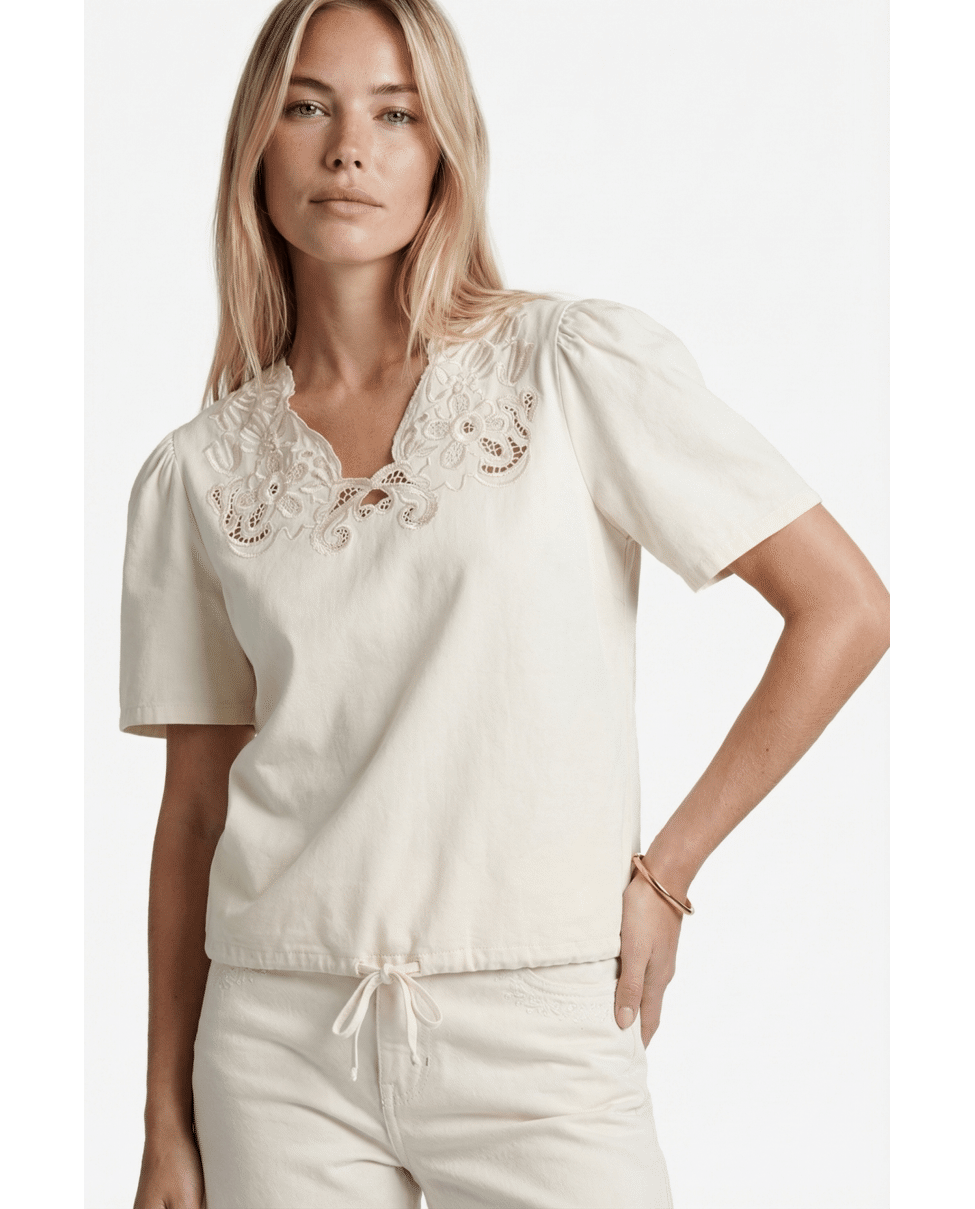 - **NOT FOUND** key: product.notifyMeModalProduct De Tilia top is een verfijnde toevoeging aan je garderobe met een elegante, vrouwelijke uitstraling. Het model heeft een comfortabele pasvorm en korte mouwen, afgewerkt met een subtiel transparant bor