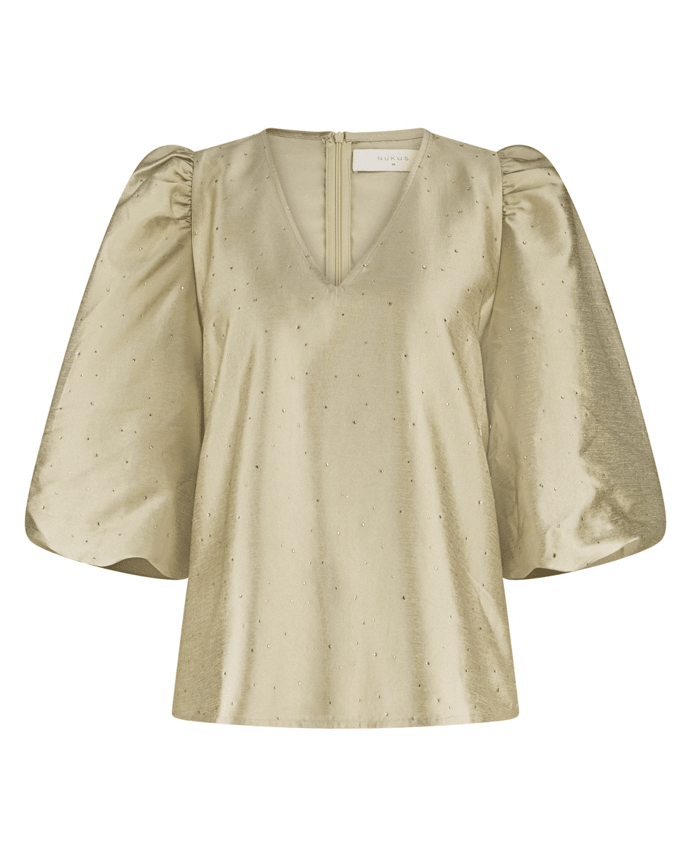 Delilah – Dames top van Nukus met strass, V-hals en korte pofmouwen