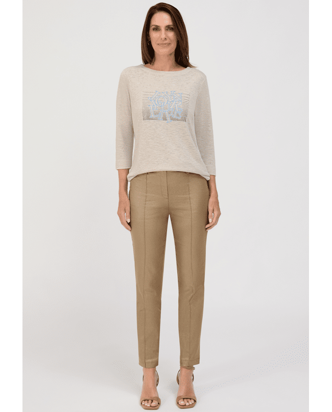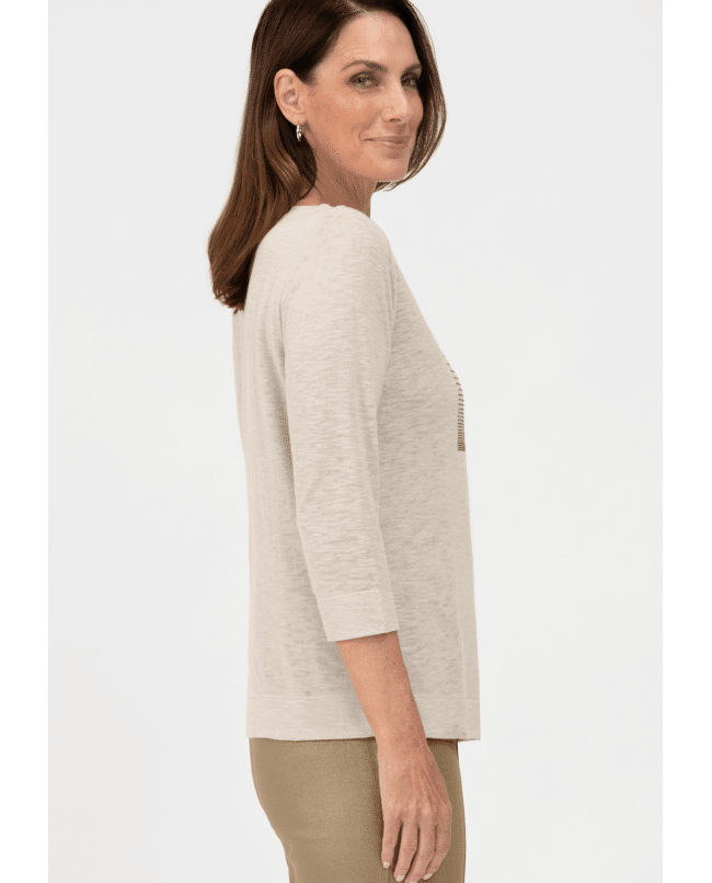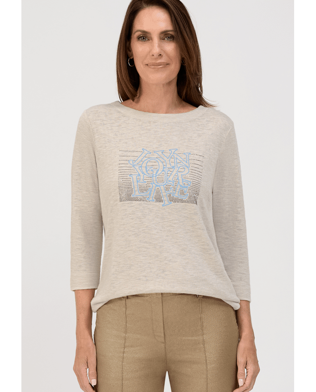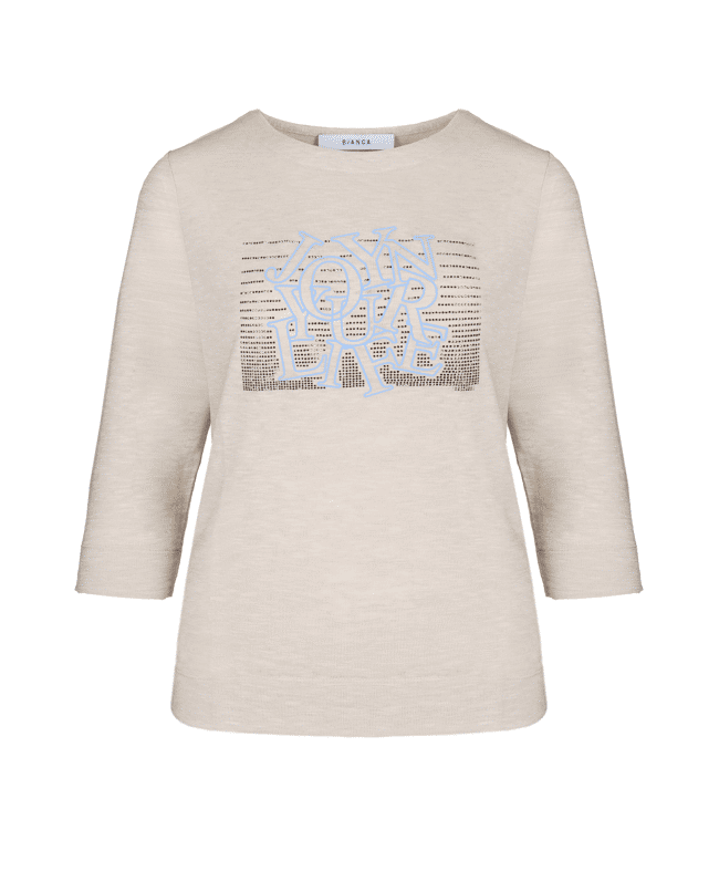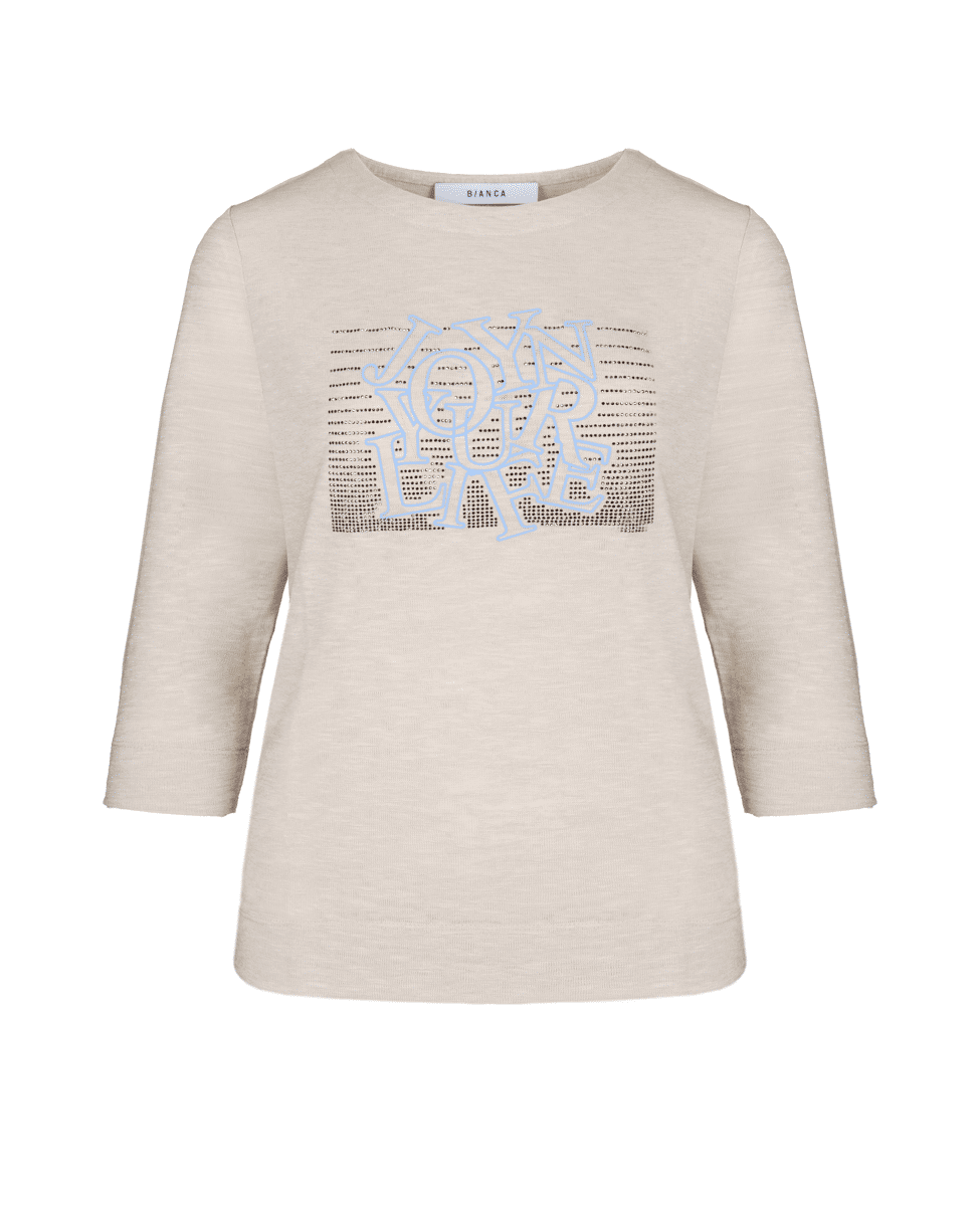 Een relaxte basic met een positieve boodschap. Dit beige T-shirt van Bianca met “Your Life”-print is een luchtig en comfortabel item voor elke dag. De lichte glans en subtiele structuur maken ‘m nét wat specialer.