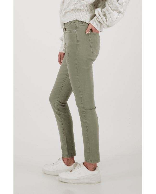 Distressed jeans met strass-steentjes