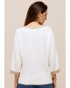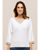 DITA – Gebreide damestrui van Bianca met lurex, boorden aan de V-hals en driekwart mouwen