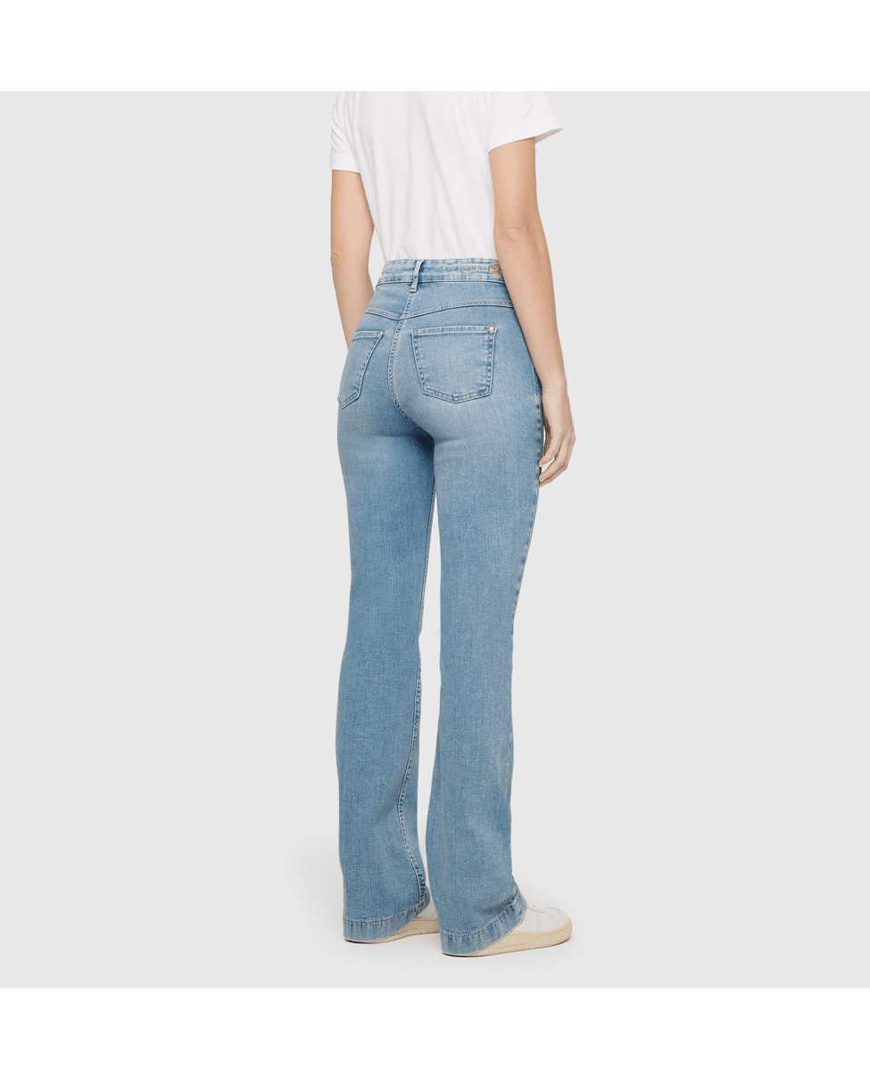 De flatterende flared fit geeft je benen lengte en je look net dat beetje extra.