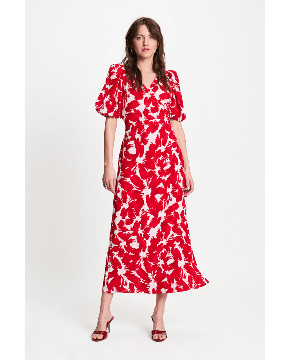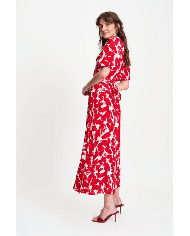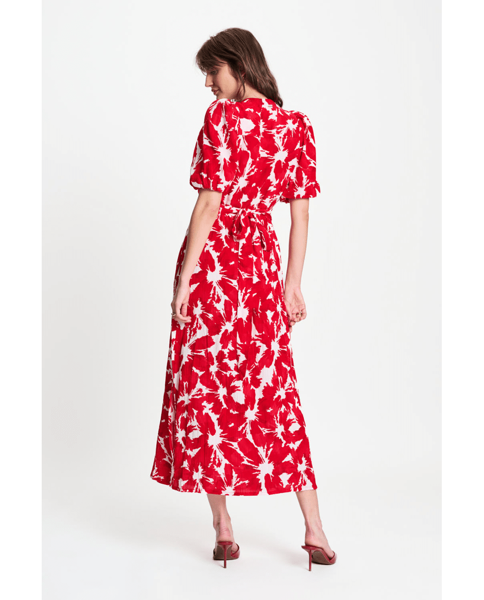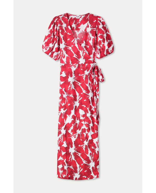 DRESS - Crinkle Bubble Bloom Red - Wikkeljurk van POM Amsterdam met bloemen print