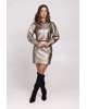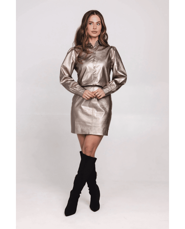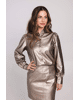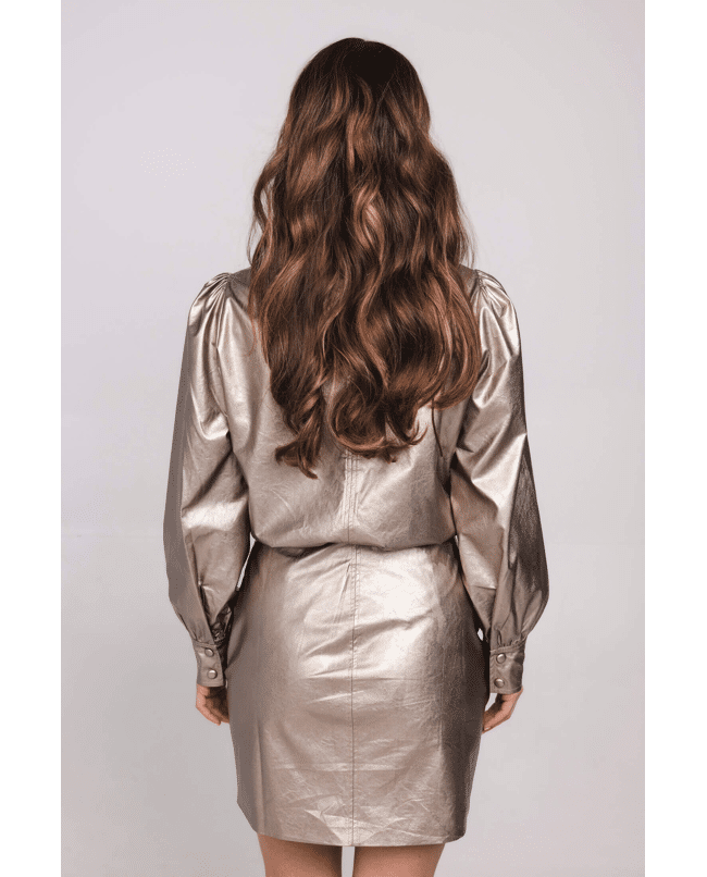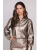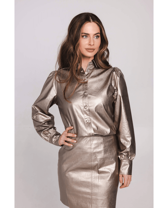 Eddie - Damesblouse van Accentil met metallic bronze imitatieleer en lange mouwen