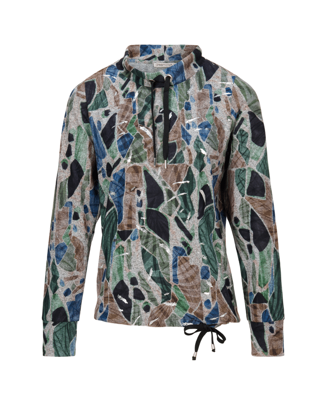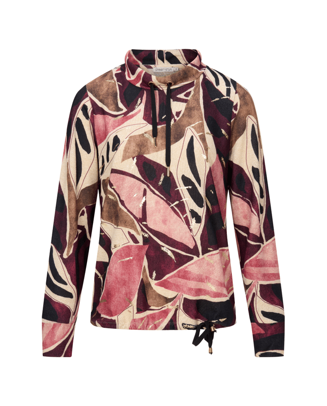 Edwina – Dames coltrui van Dreamstar met allover print, lange mouwen, strikoorden aan de zoom en col