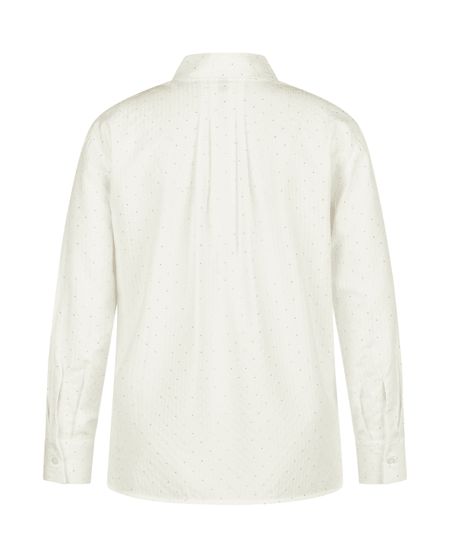 Deze blouse is stijlvol in al zijn eenvoud. De fijne structuur en licht glinsterende finish maken ‘m perfect voor zowel werk als feestelijke momenten.