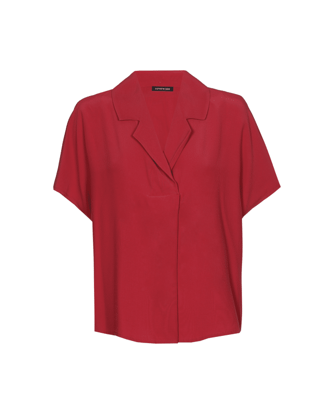 Deze donkerrode blouse in soepele crêpestof is een stijlvolle basic met een twist. Ideaal voor zowel casual als geklede momenten.
