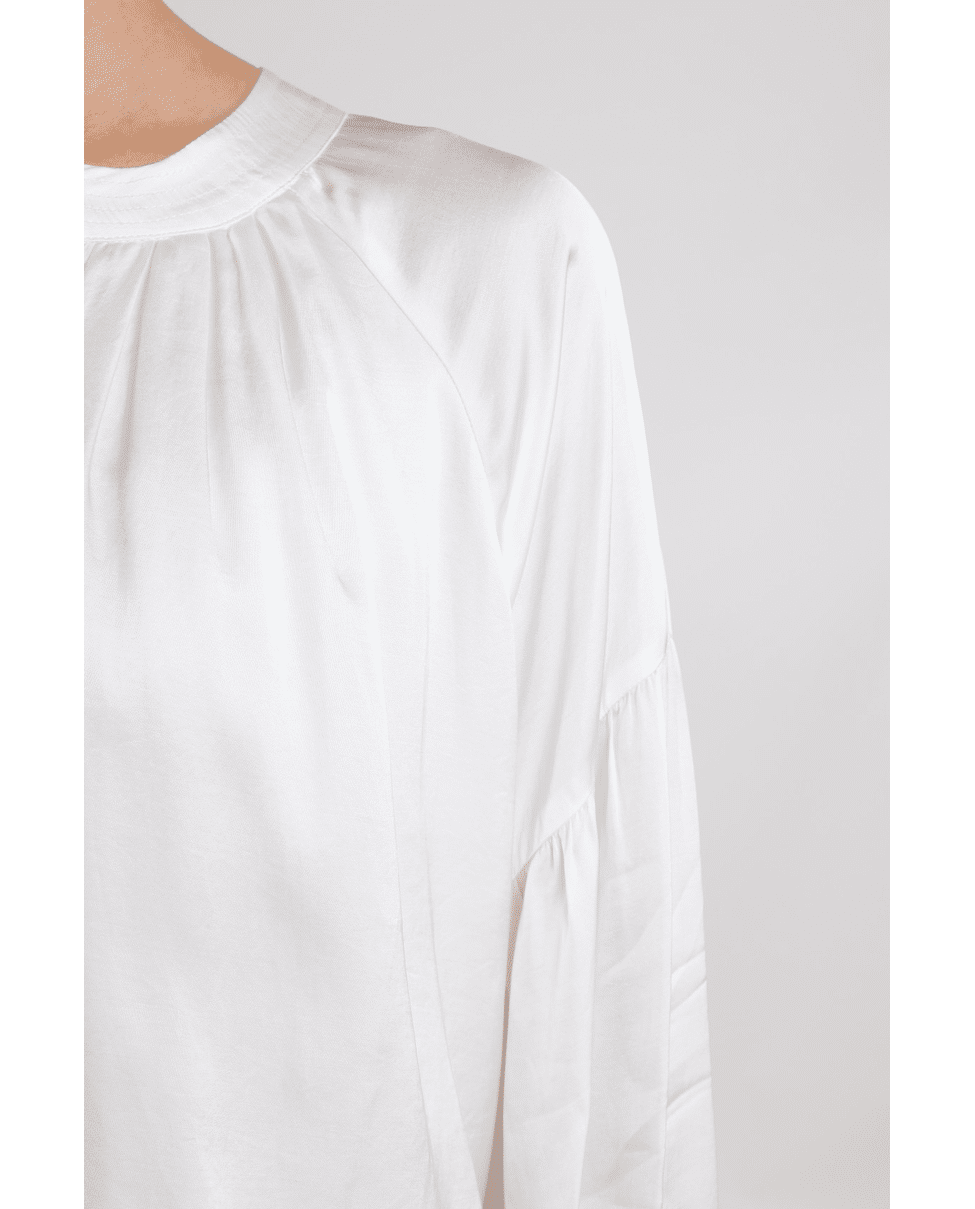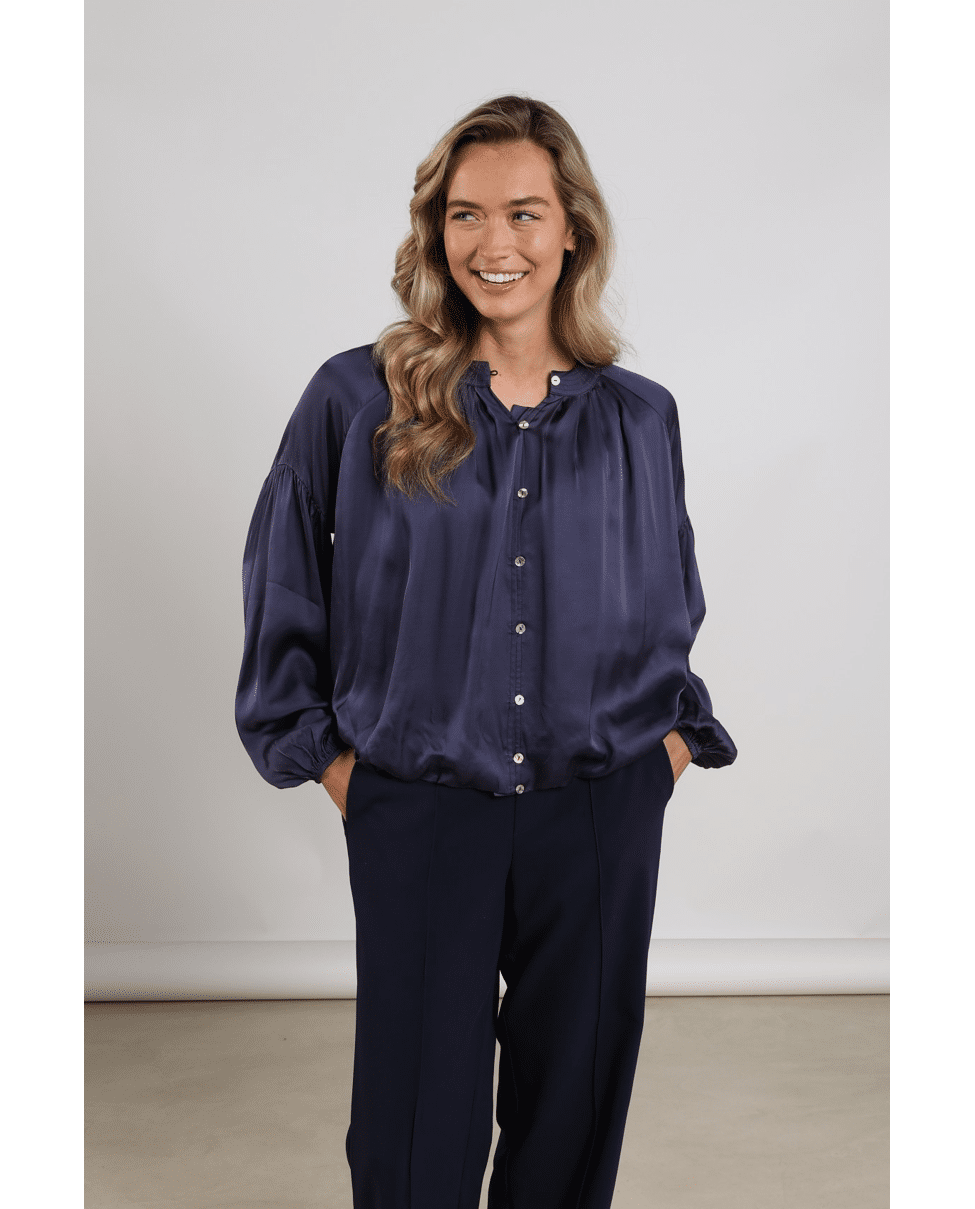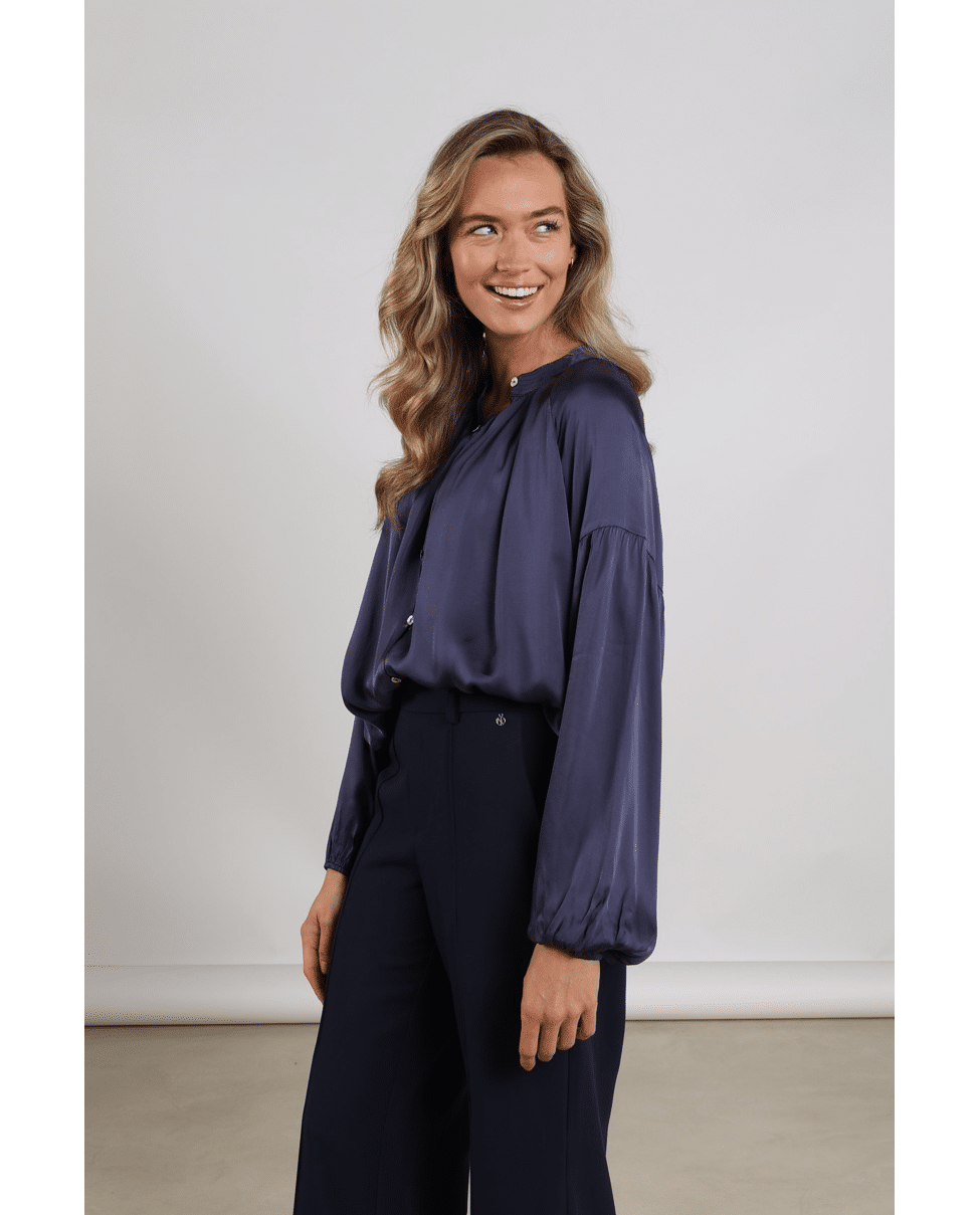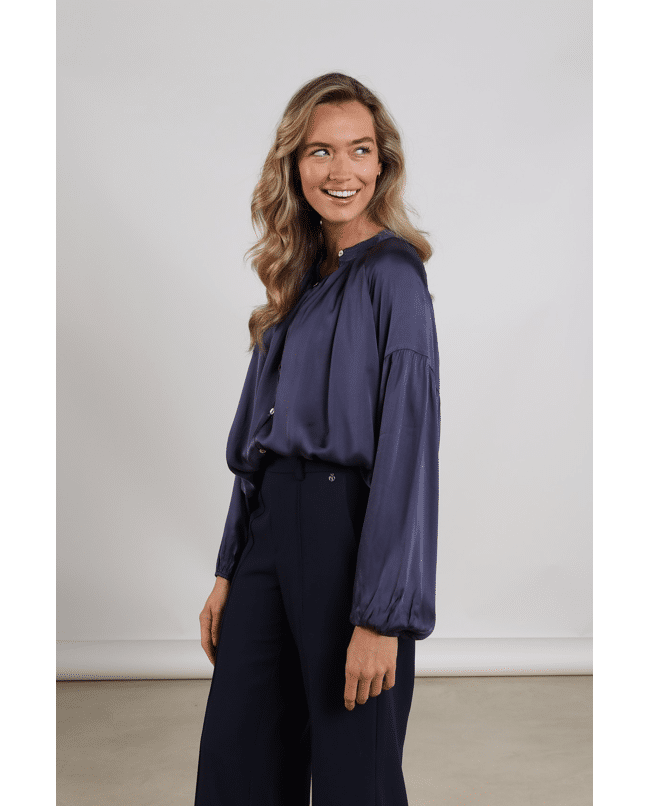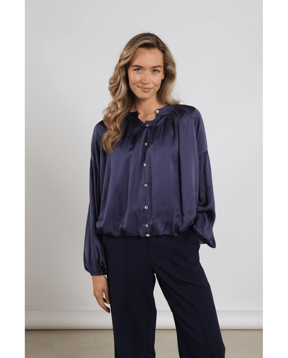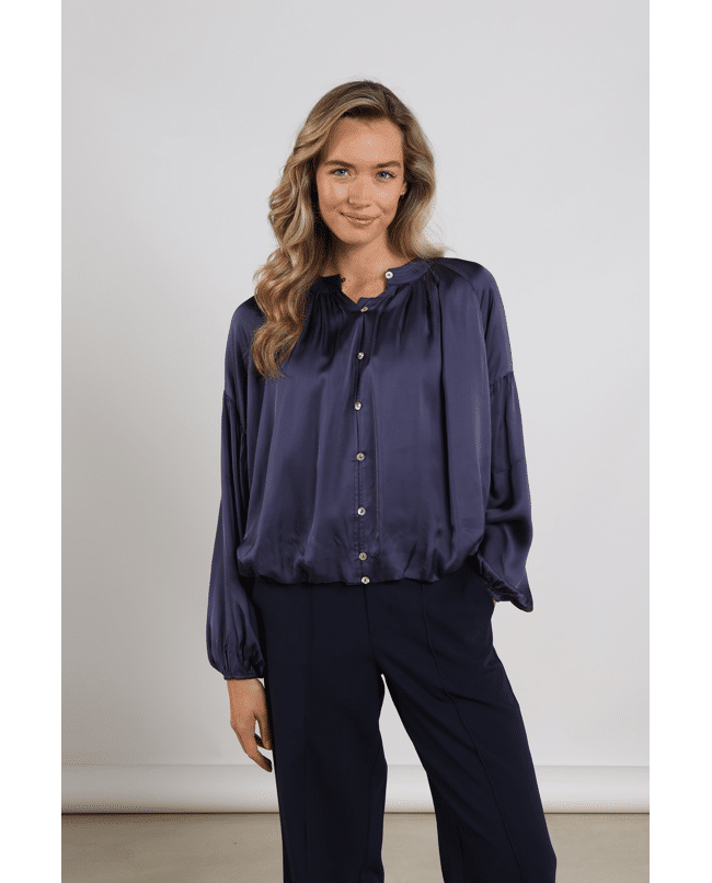 Elly - Damesblouse van Nukus met ronde hals, knoopsluiting, ballon zoom en lange mouwen