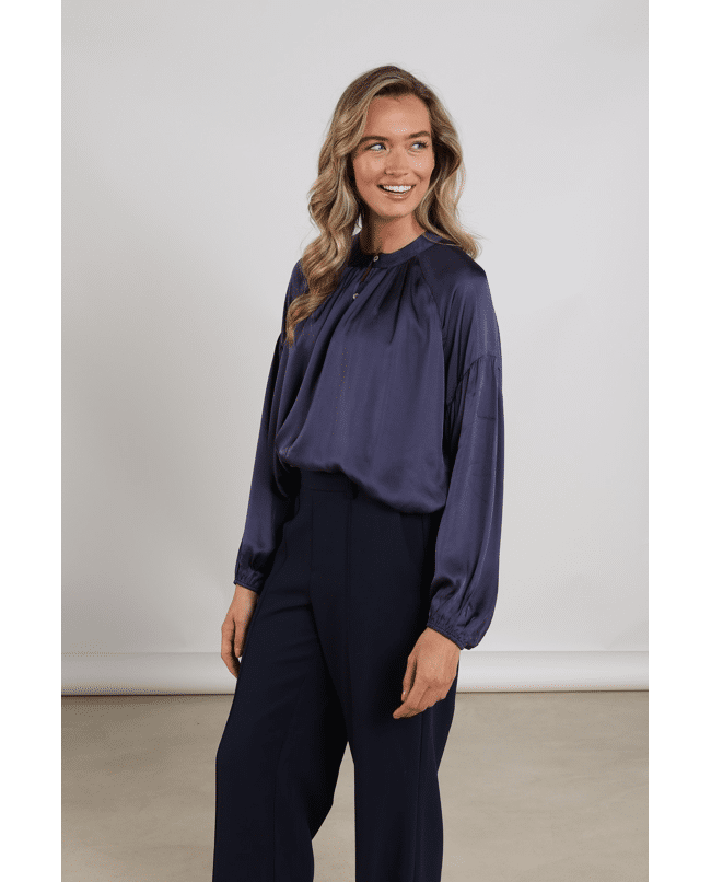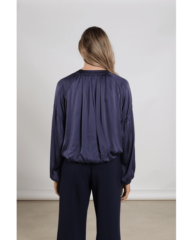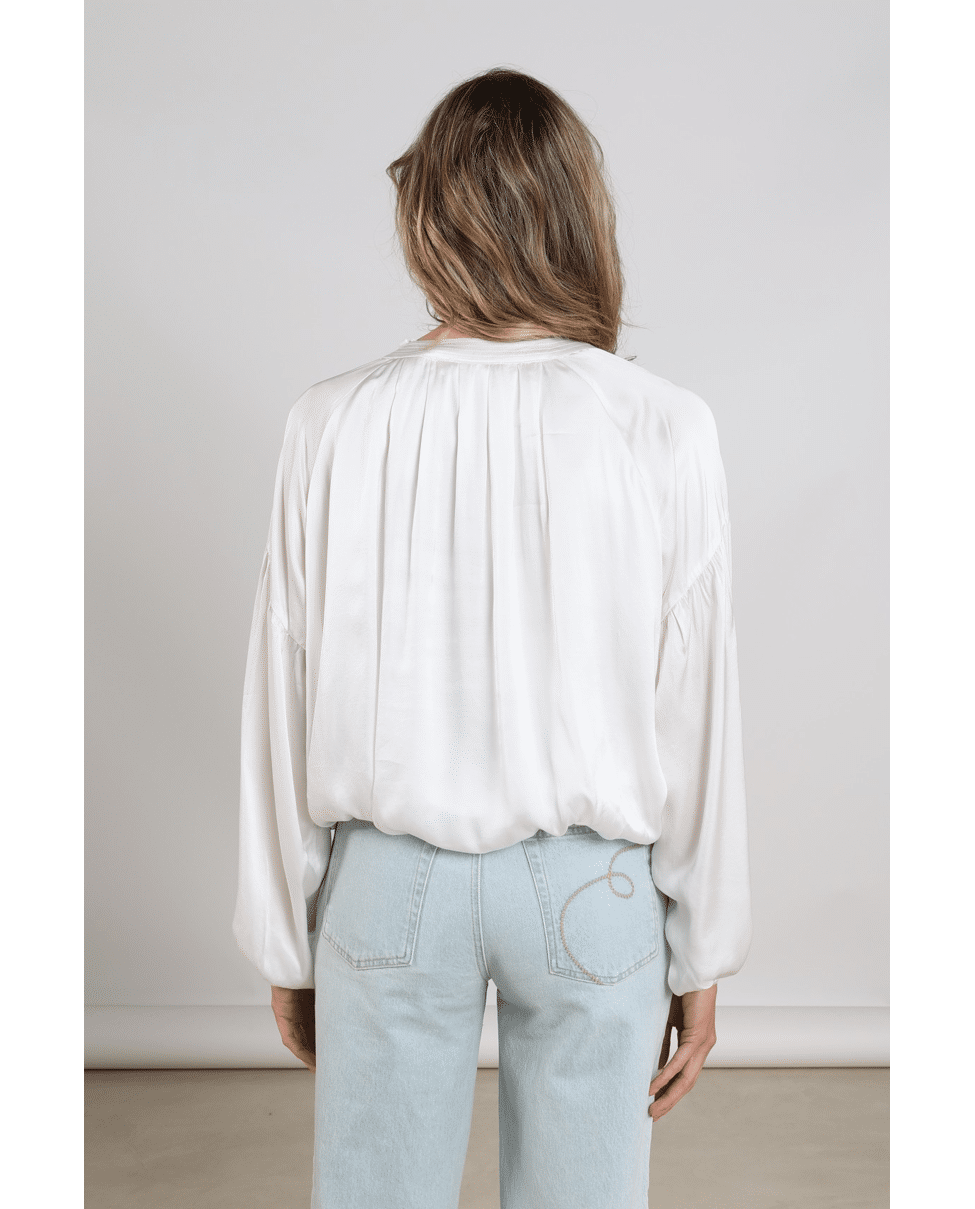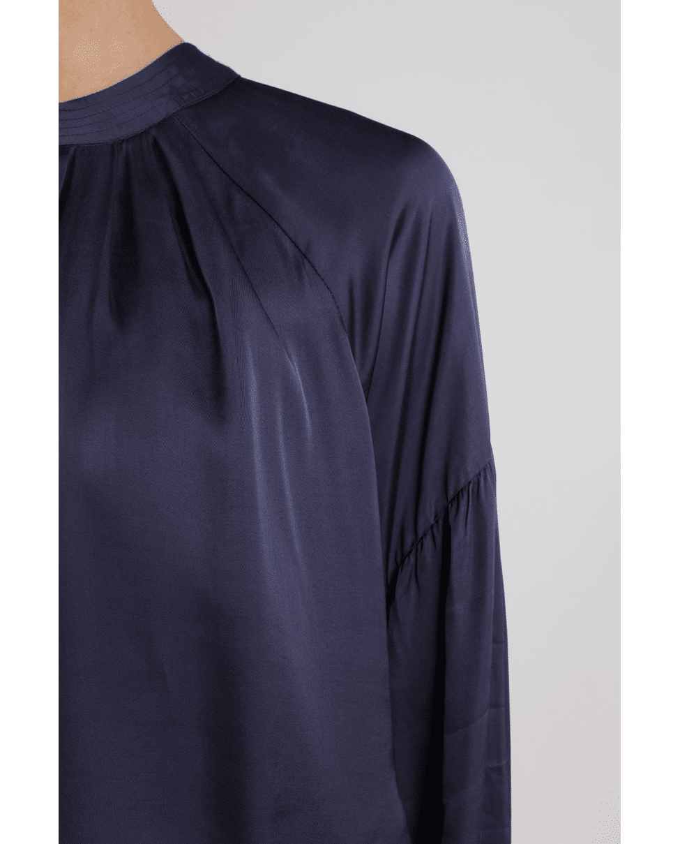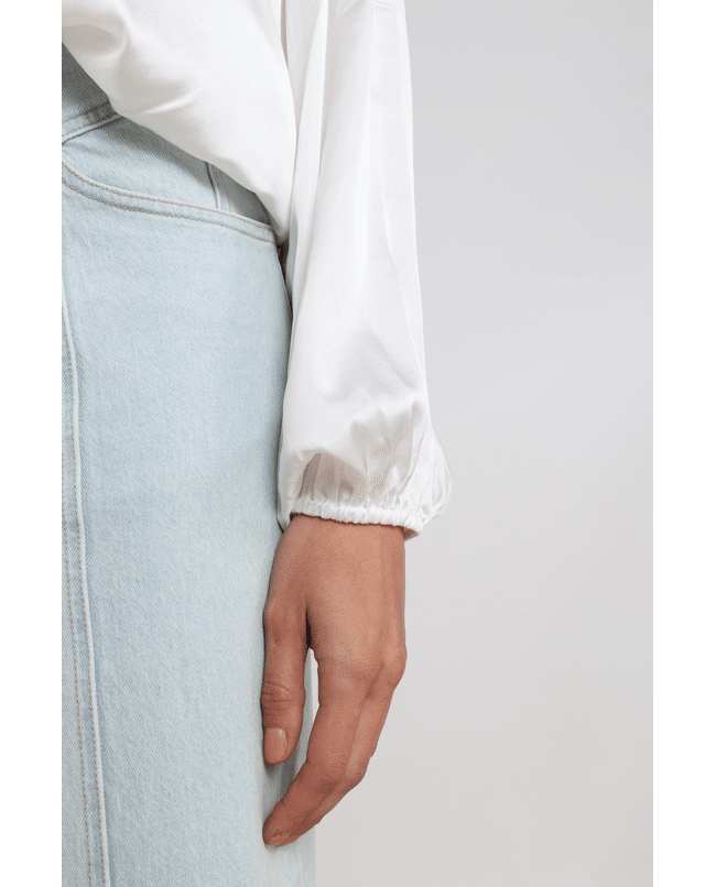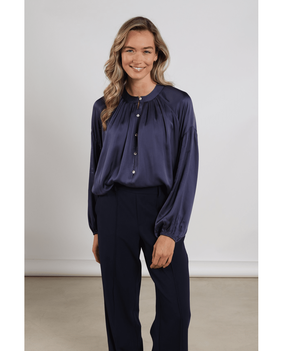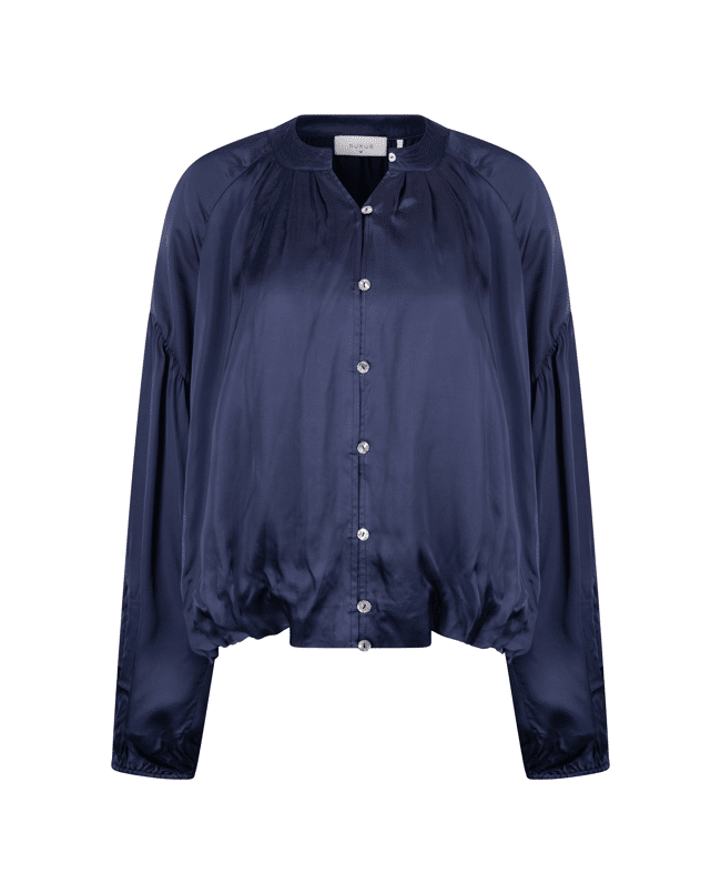 Elly - Damesblouse van Nukus met ronde hals, knoopsluiting, ballon zoom en lange mouwen